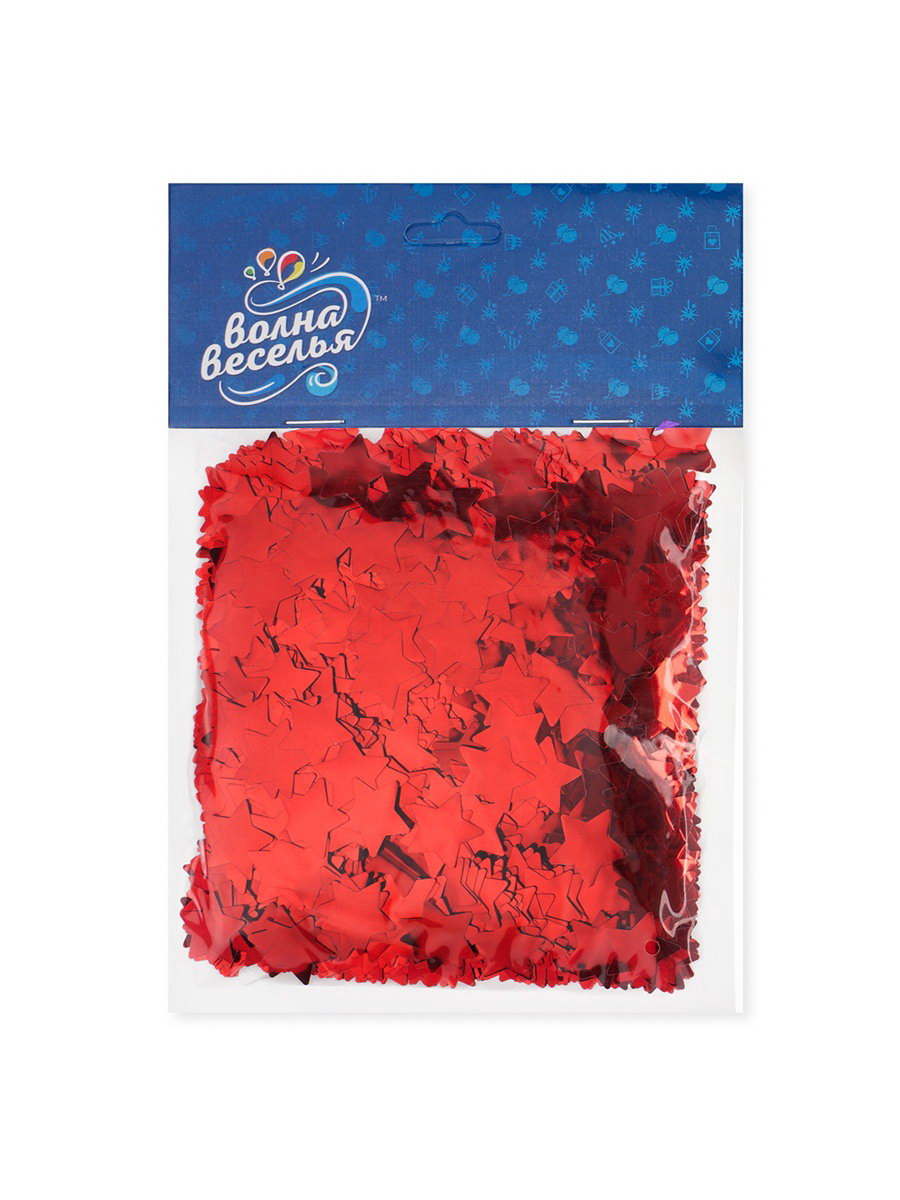 Конфетти "Звезда" красные, металлик, 1.5 см, 50 г, Волна Веселья, Китай