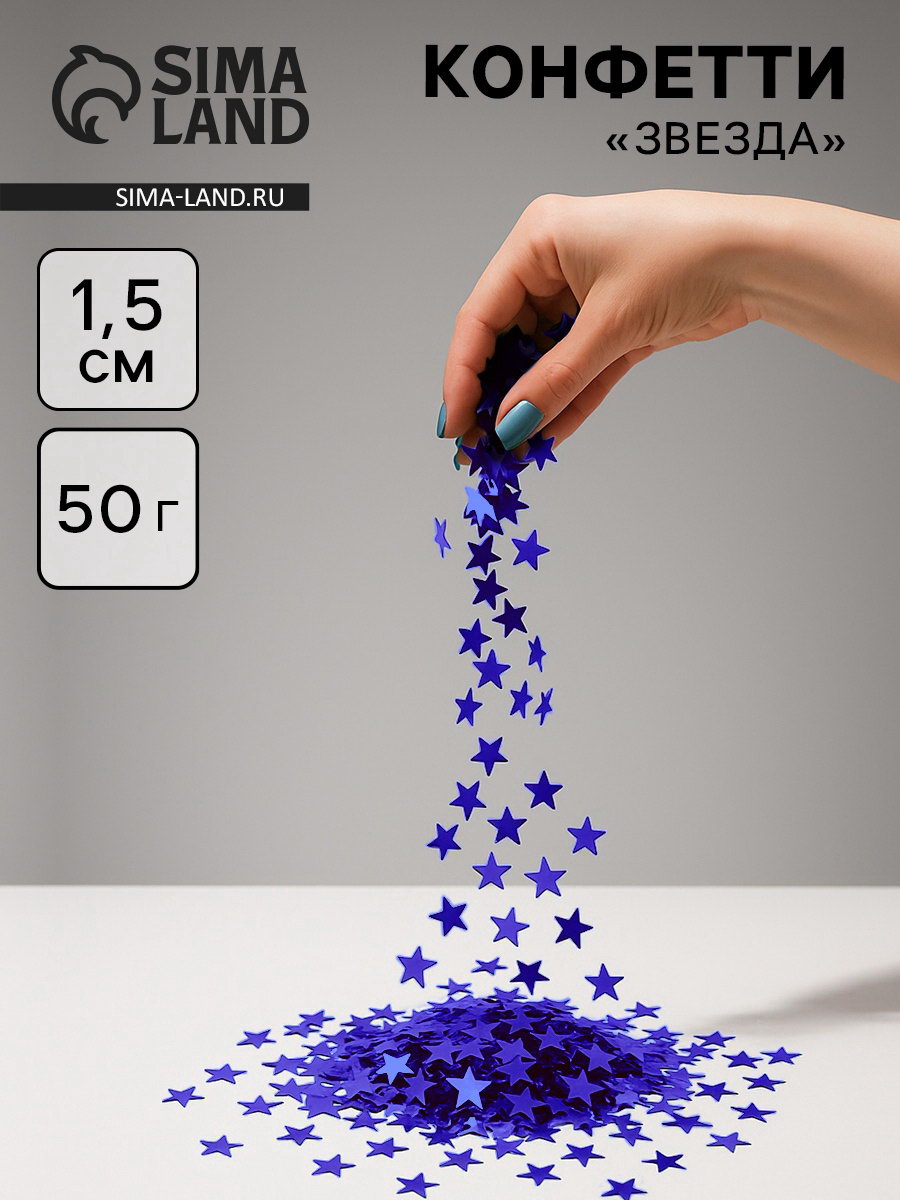 Конфетти "Звезда" синие, металлик, 1.5 см, 50 г, Волна Веселья, Китай