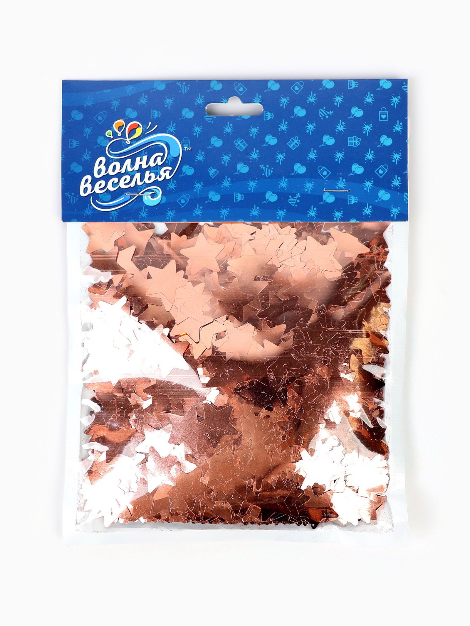 Конфетти "Звезда" розовое золото, металлик, 1.5 см, 50 г, Волна Веселья, Китай
