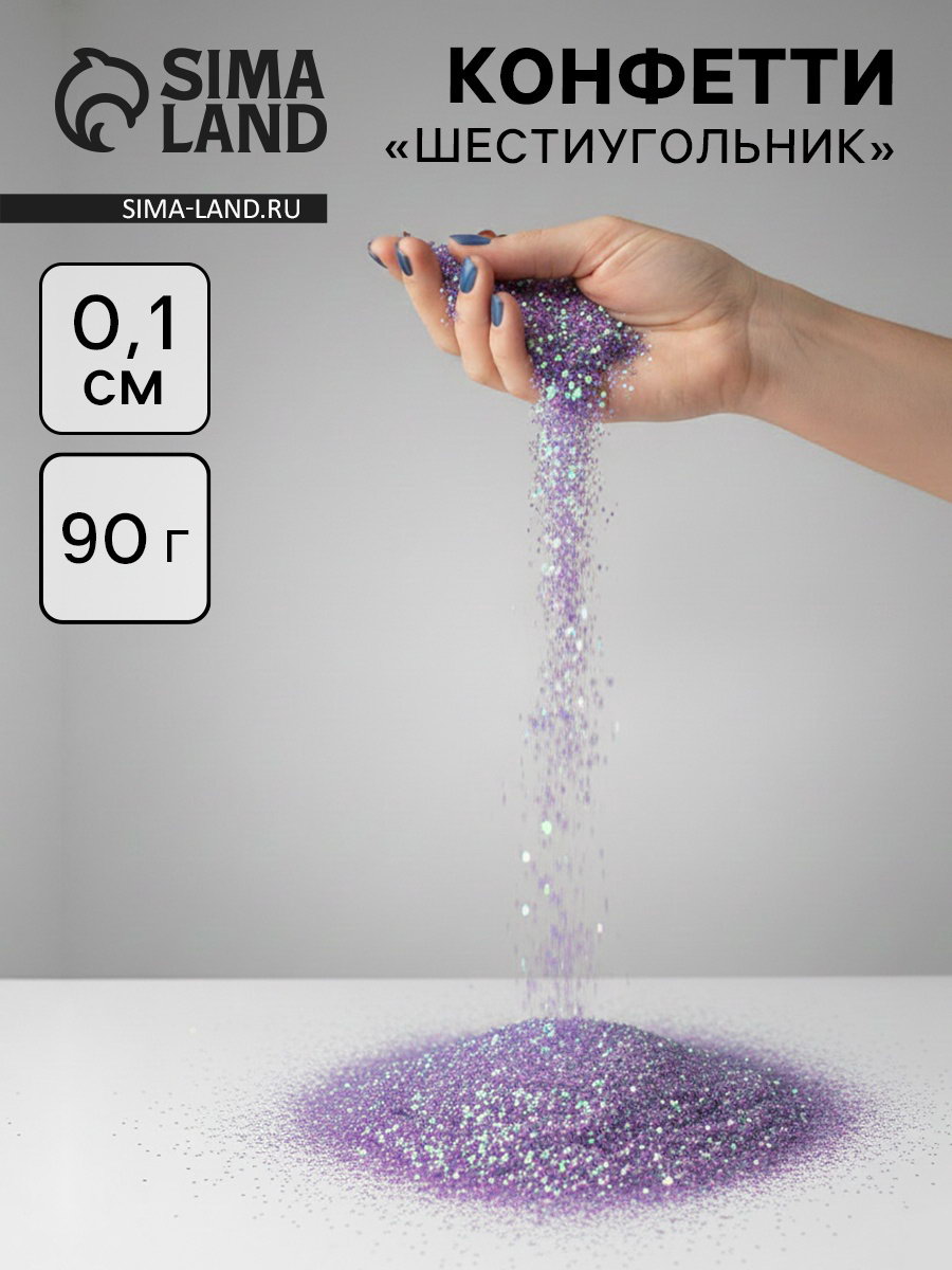Конфетти "Шестиугольники" сиреневые, перламутр, 0.1 см, 90 г, Волна Веселья, Китай