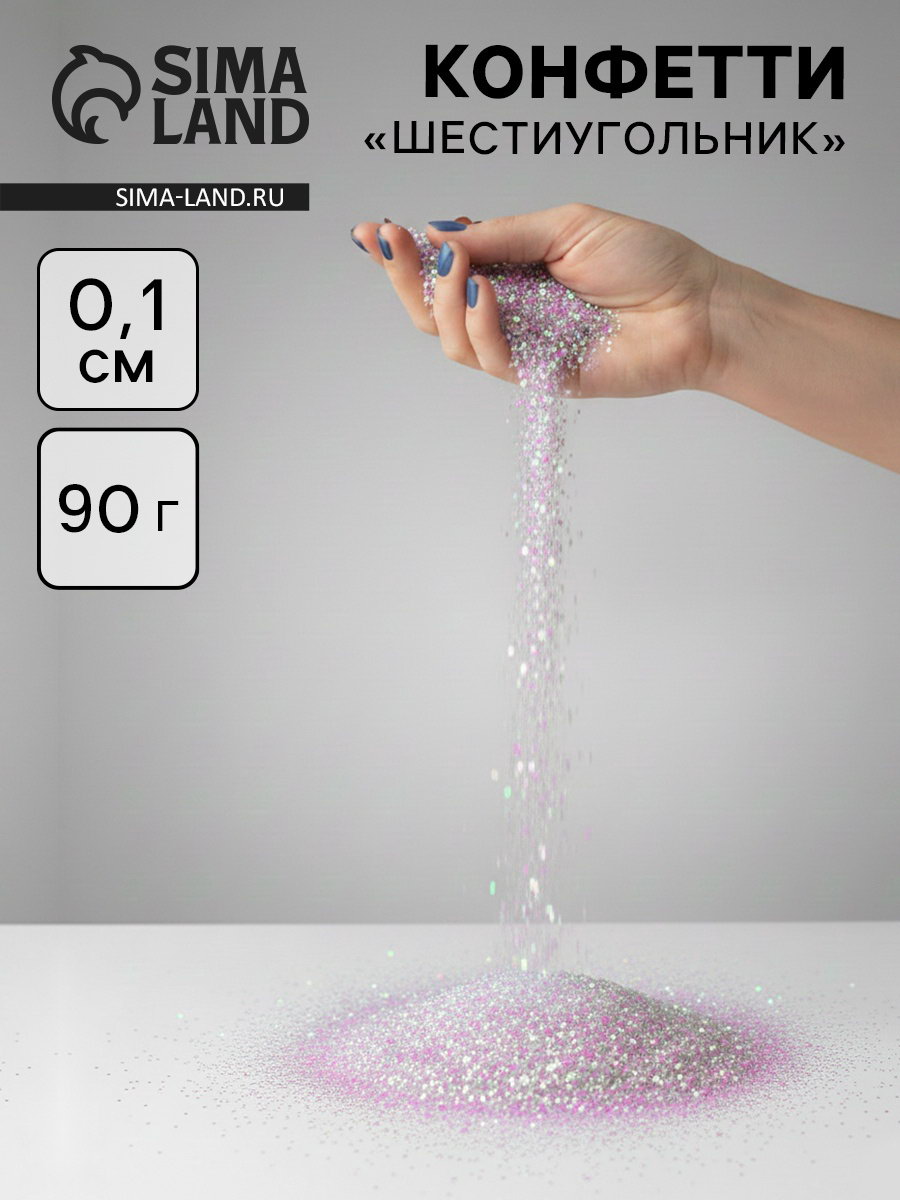 Конфетти "Шестиугольники" белые, голография, 0.1 см, 90 г, Волна Веселья, Китай
