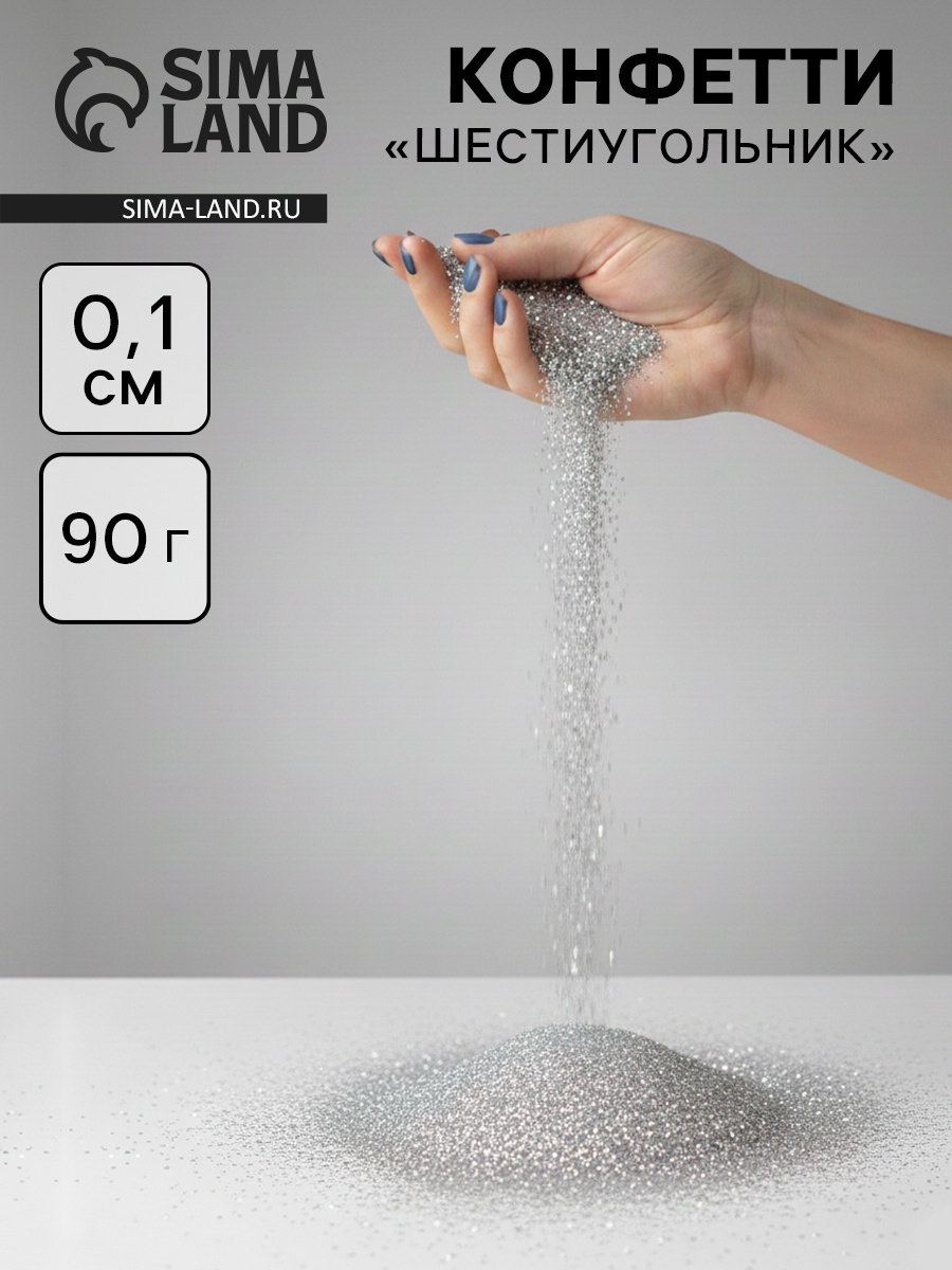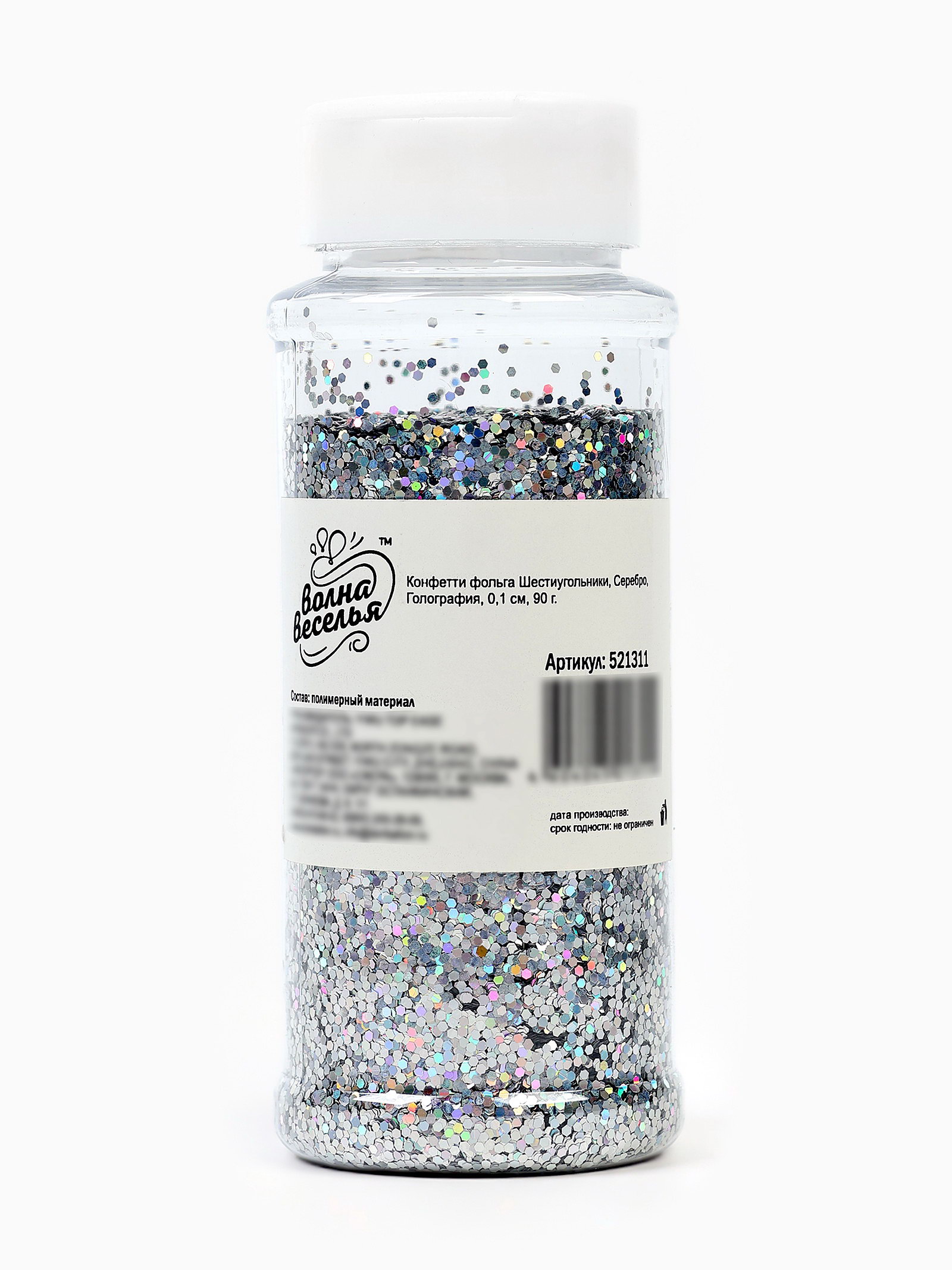 Конфетти "Шестиугольники" серебро, голография, 0.1 см, 90 г, Волна Веселья, Китай