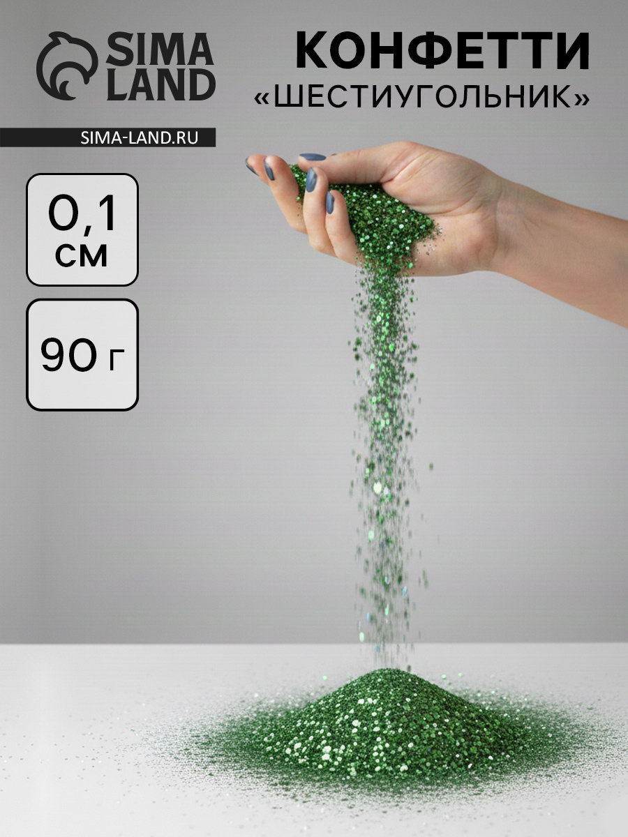 Конфетти "Шестиугольники" зелёные, металлик, 0.1 см, 90 г, Волна Веселья, Китай