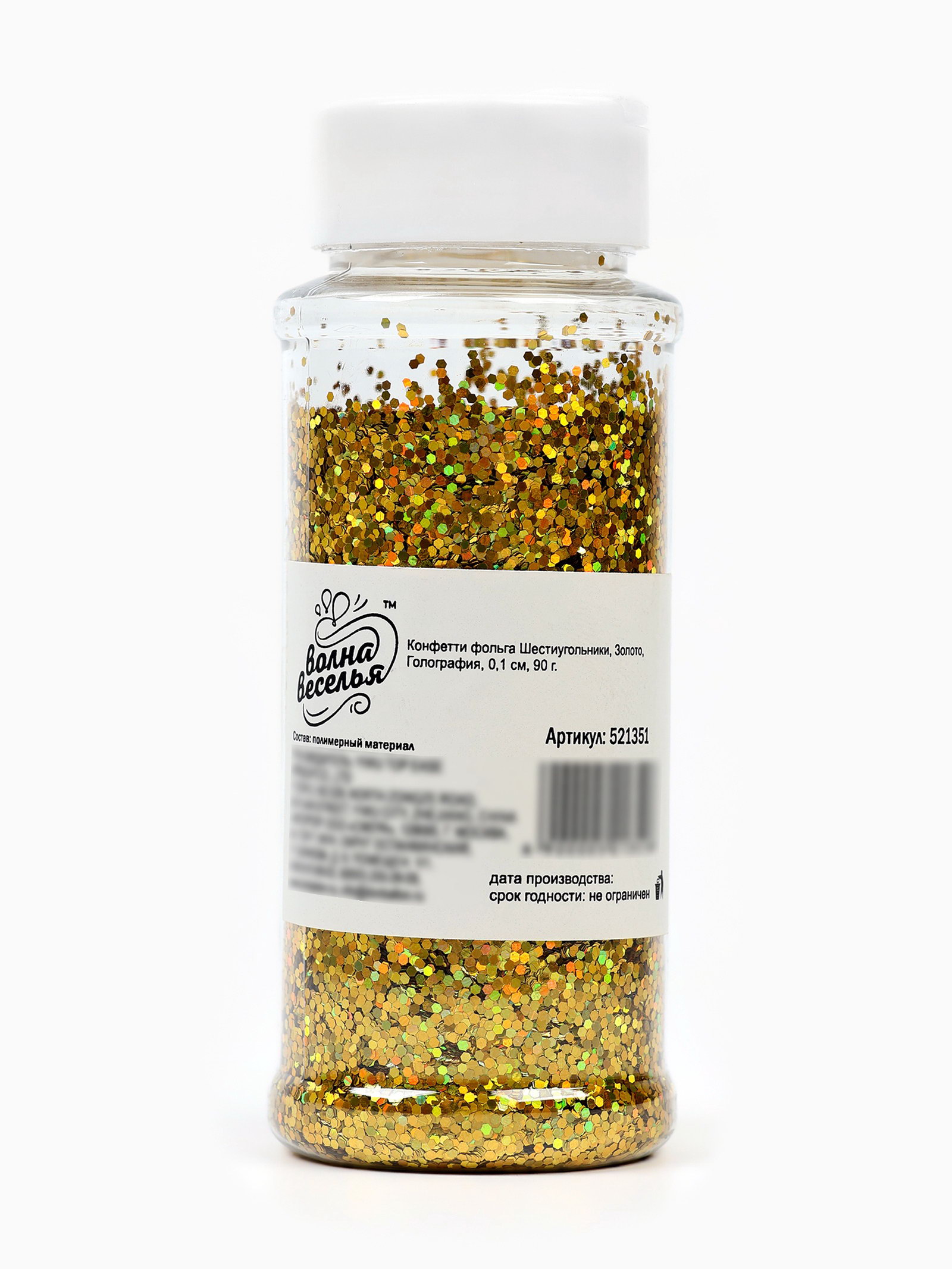 Конфетти "Шестиугольники" золото, голография, 0.1 см, 90 г, Волна Веселья, Китай