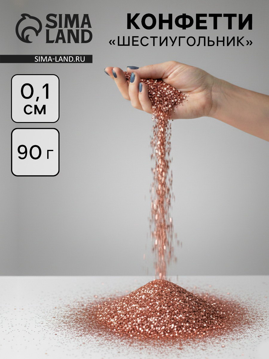 Конфетти "Шестиугольники" розовое золото, металлик, 0.1 см, 90 г, Волна Веселья, Китай