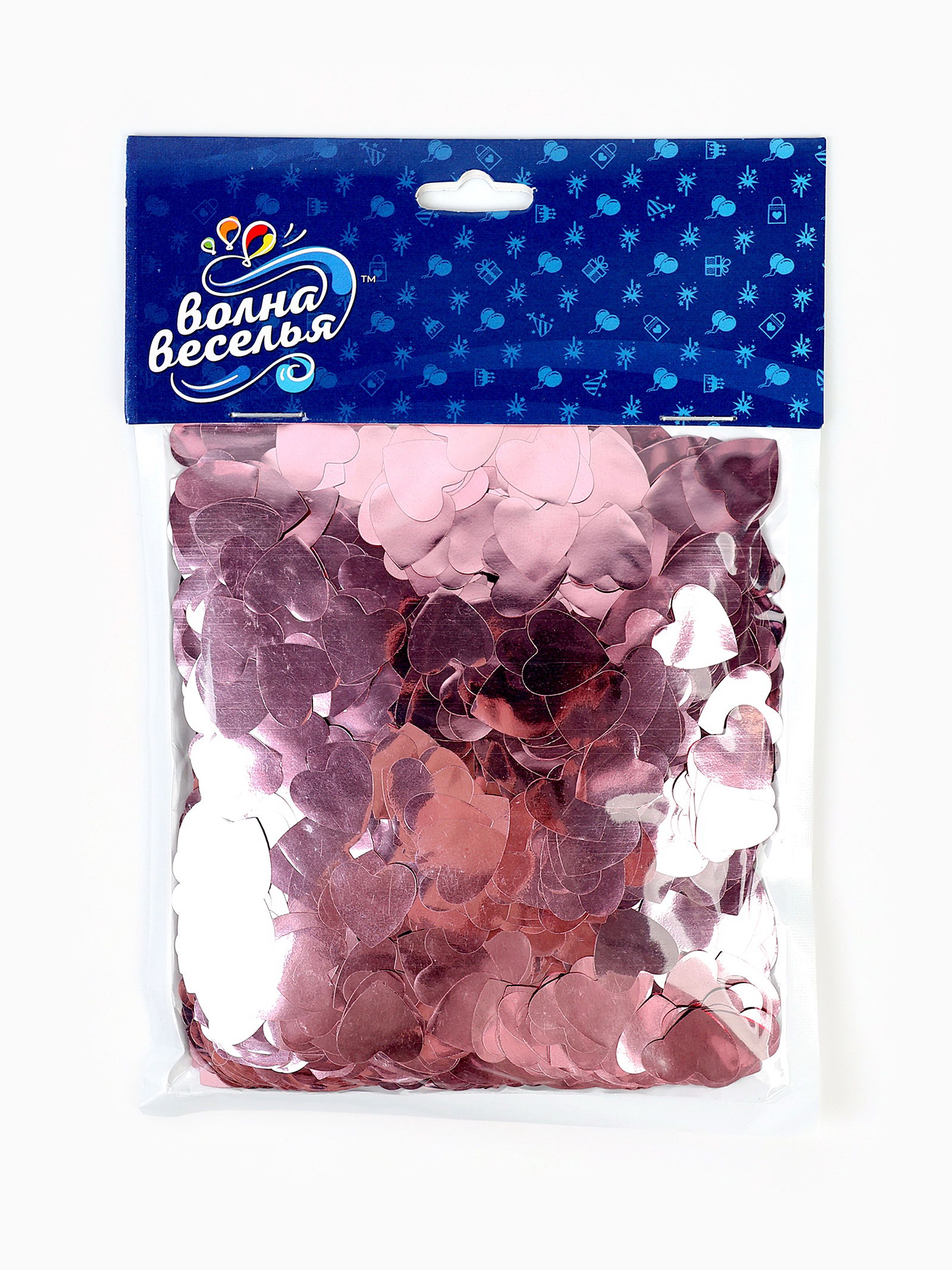 Конфетти "Сердце" светло-розовые, металлик, 1.5 см, 50 г, Волна Веселья, Китай