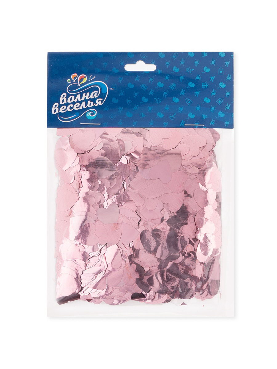 Конфетти "Сердце" светло-розовые, металлик, 1.5 см, 50 г, Волна Веселья, Китай