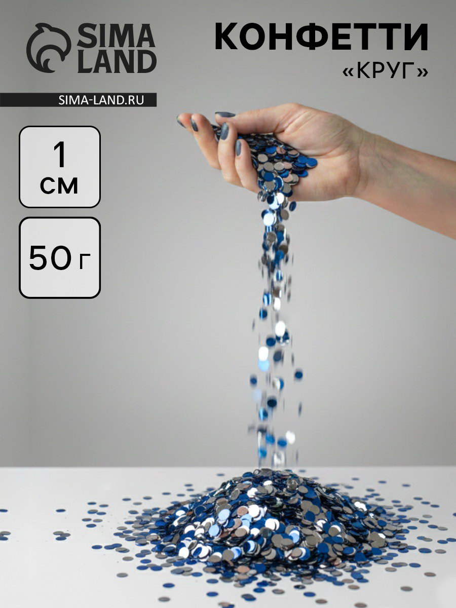 Конфетти "Круг" голубой МИКС, металлик, 1 см, 50 г, Волна Веселья, Китай