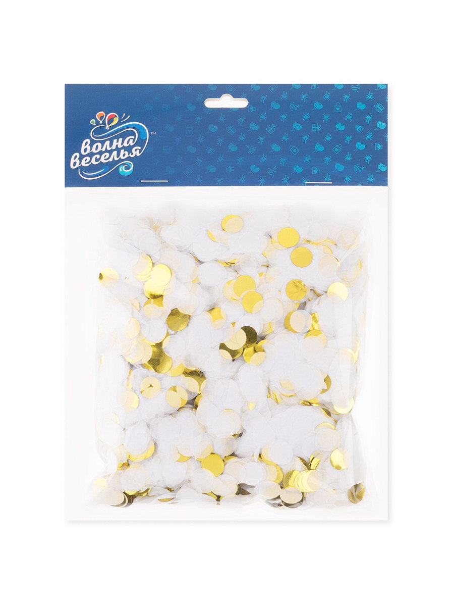 Конфетти "Круг", фольга и тишью, золотой МИКС, металлик, 1 см, 50 г, Волна Веселья, Китай