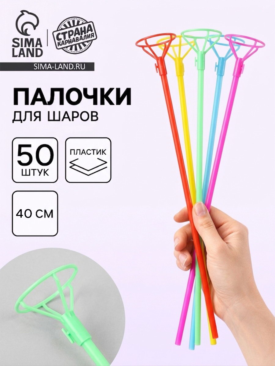 Трубочки и зажим для воздушных шаров, d=10 мм, длина 40 см, МИКС, 50 штук, 1x40x1 см., Страна Карнавалия, Китай