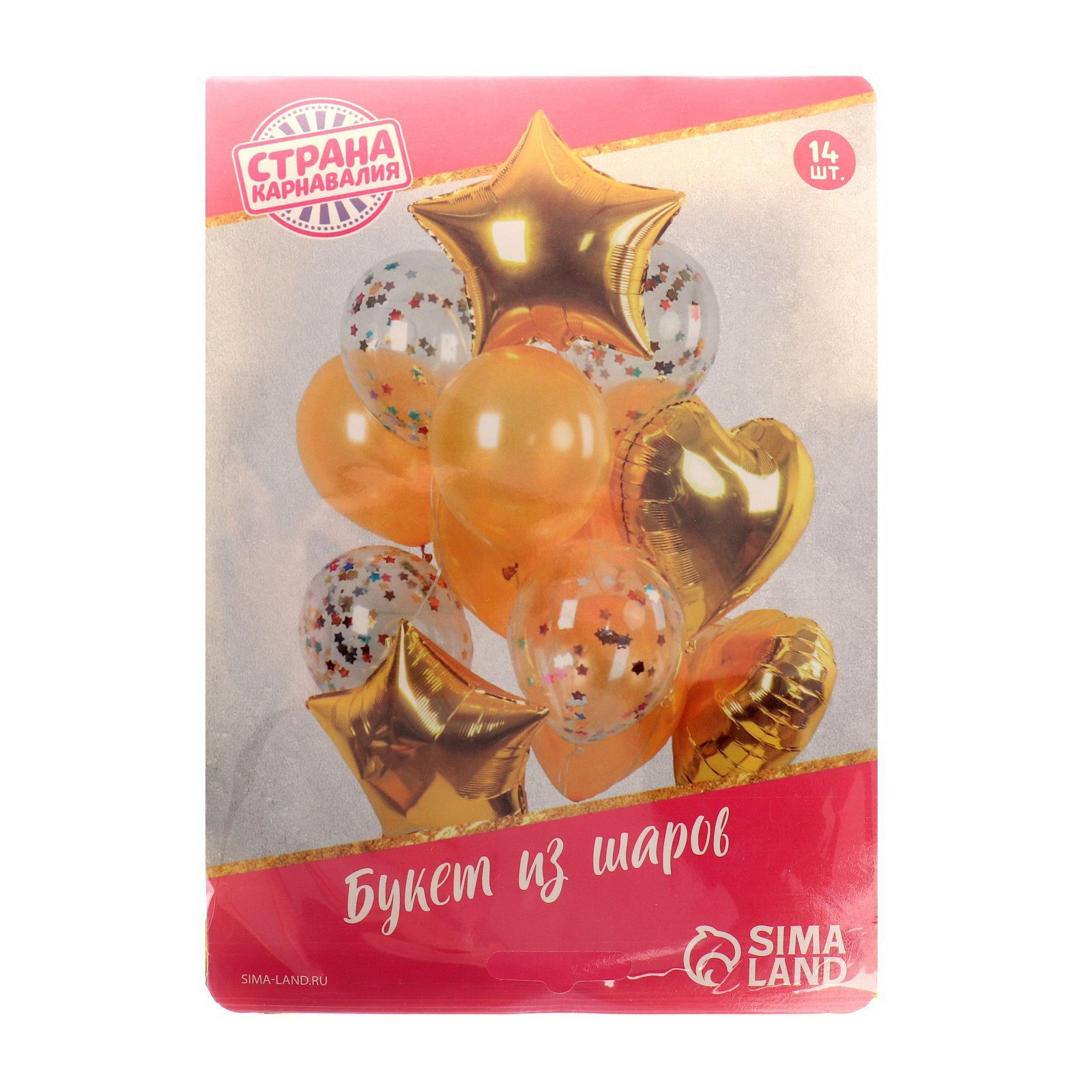 Шары воздушные "Романтика", фольга, латекс, золотой, 14 шт., 17x23x0.3 см., Страна Карнавалия, Китай