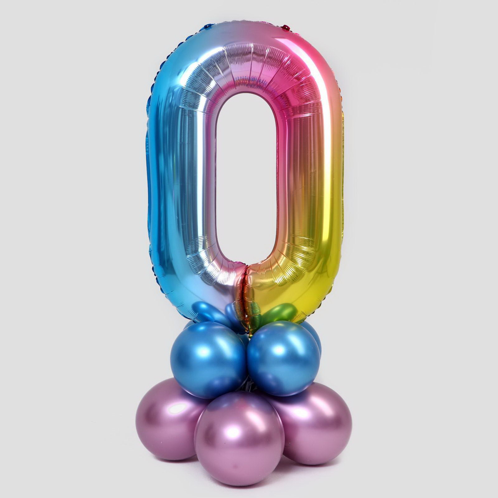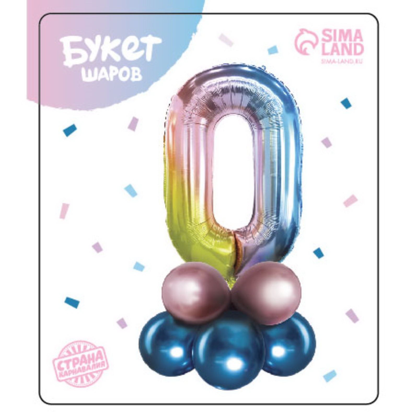 Букет из шаров "0", цифра, фольга, латекс, набор 9 шт., цвет градиент, 14x19 см., Страна Карнавалия, Китай