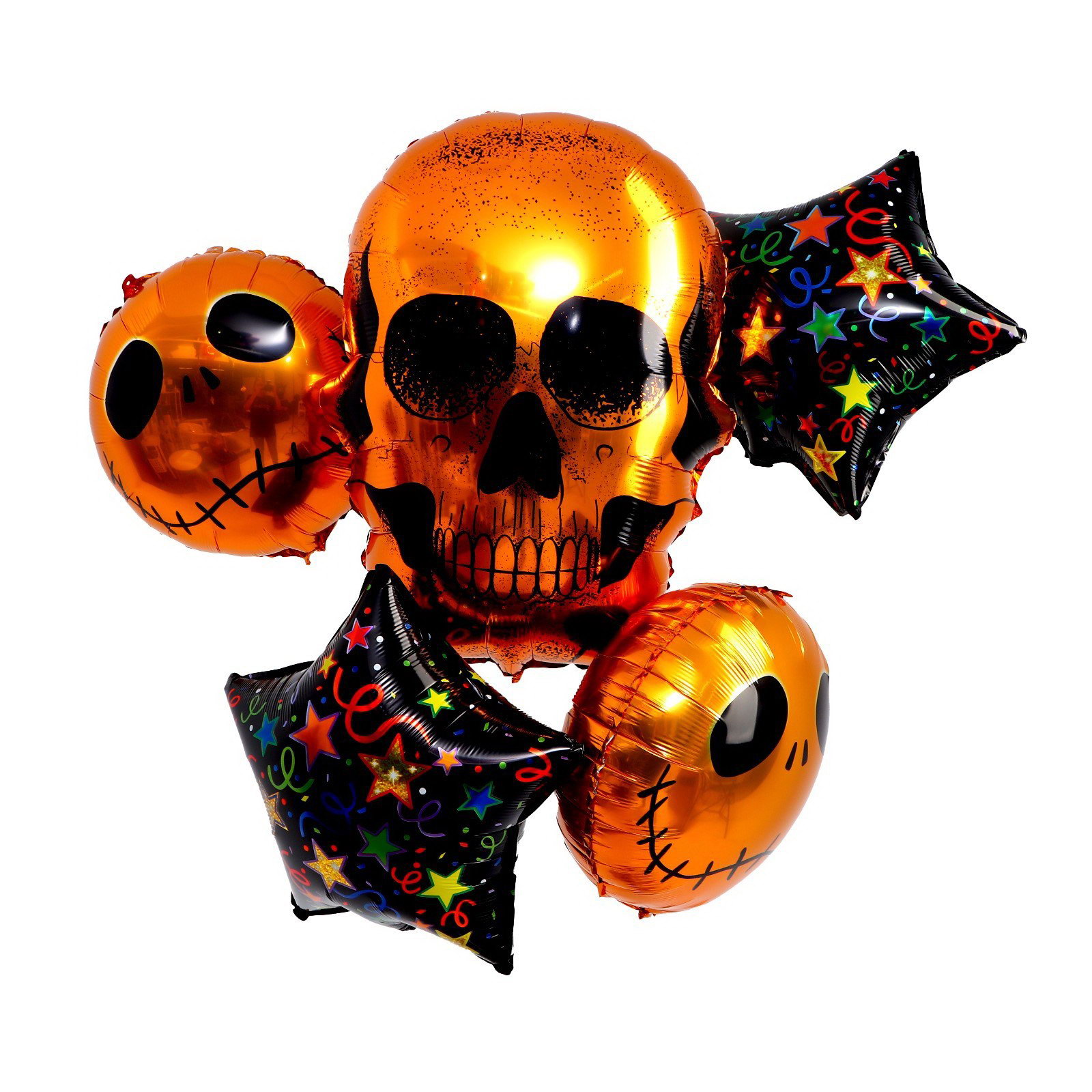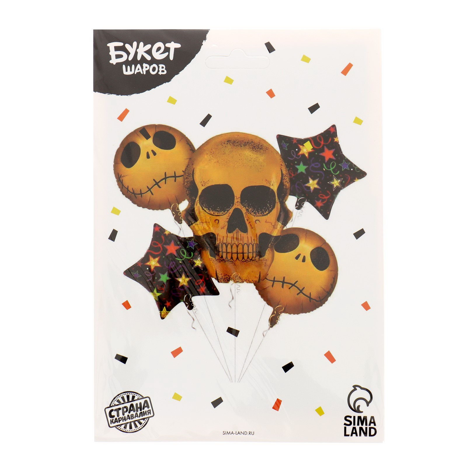 Букет из шаров "Весёлые скелеты", фольга, набор 5 шт., 15x20x0.3 см., Страна Карнавалия, Китай