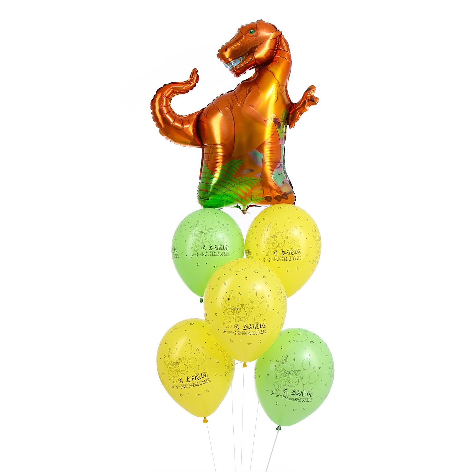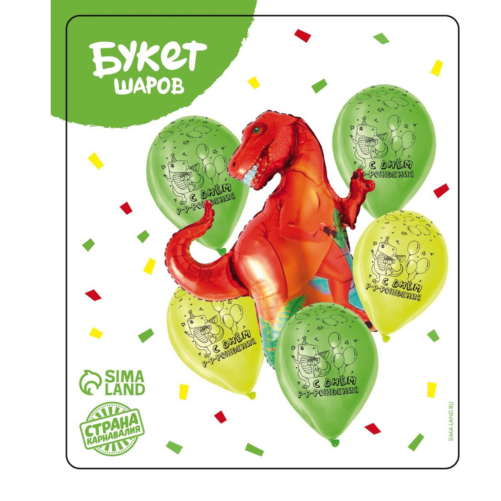 Букет из воздушных шаров "С Днём РРРРождения, динозавр", набор 6 шт., фольга, латекс, Страна Карнавалия, Китай