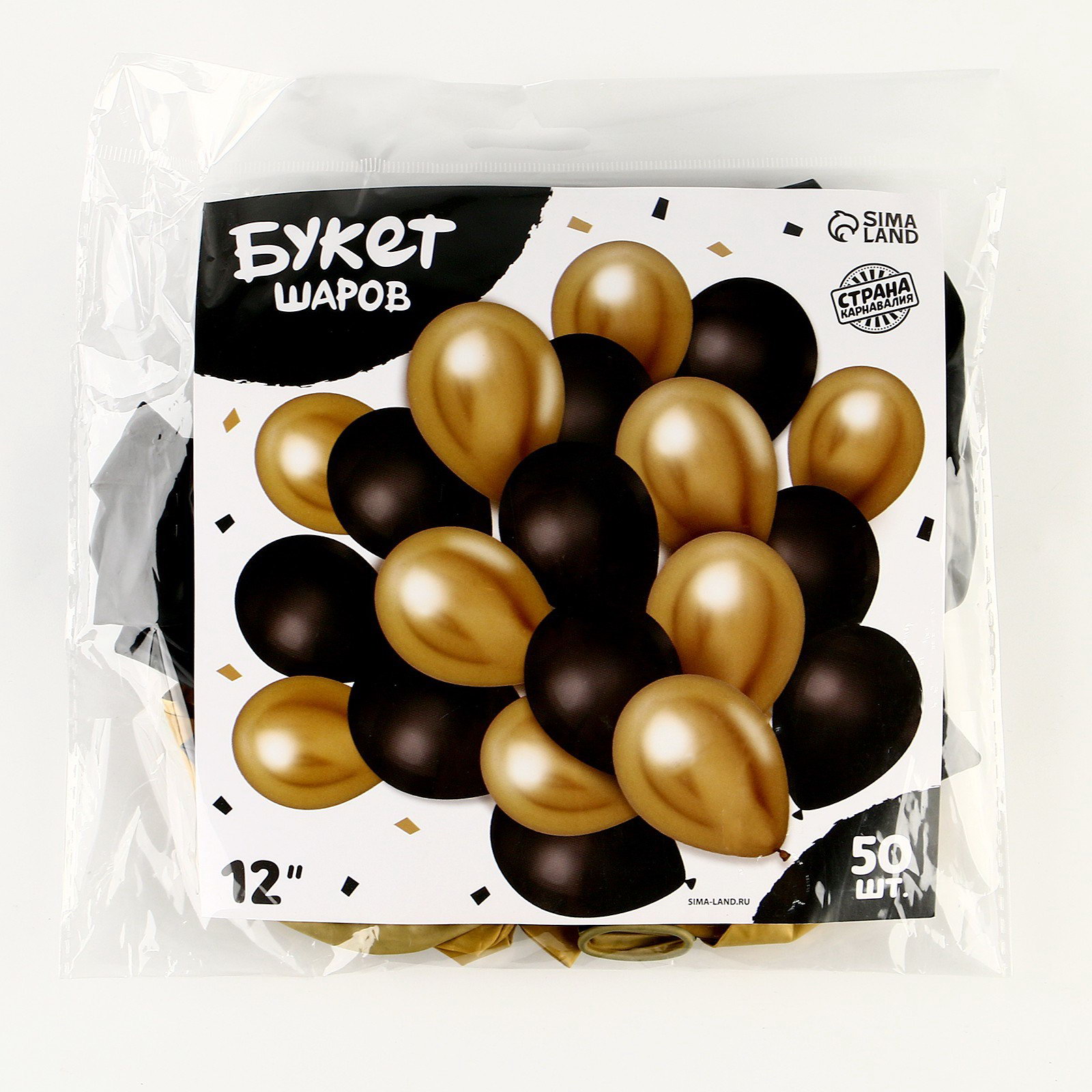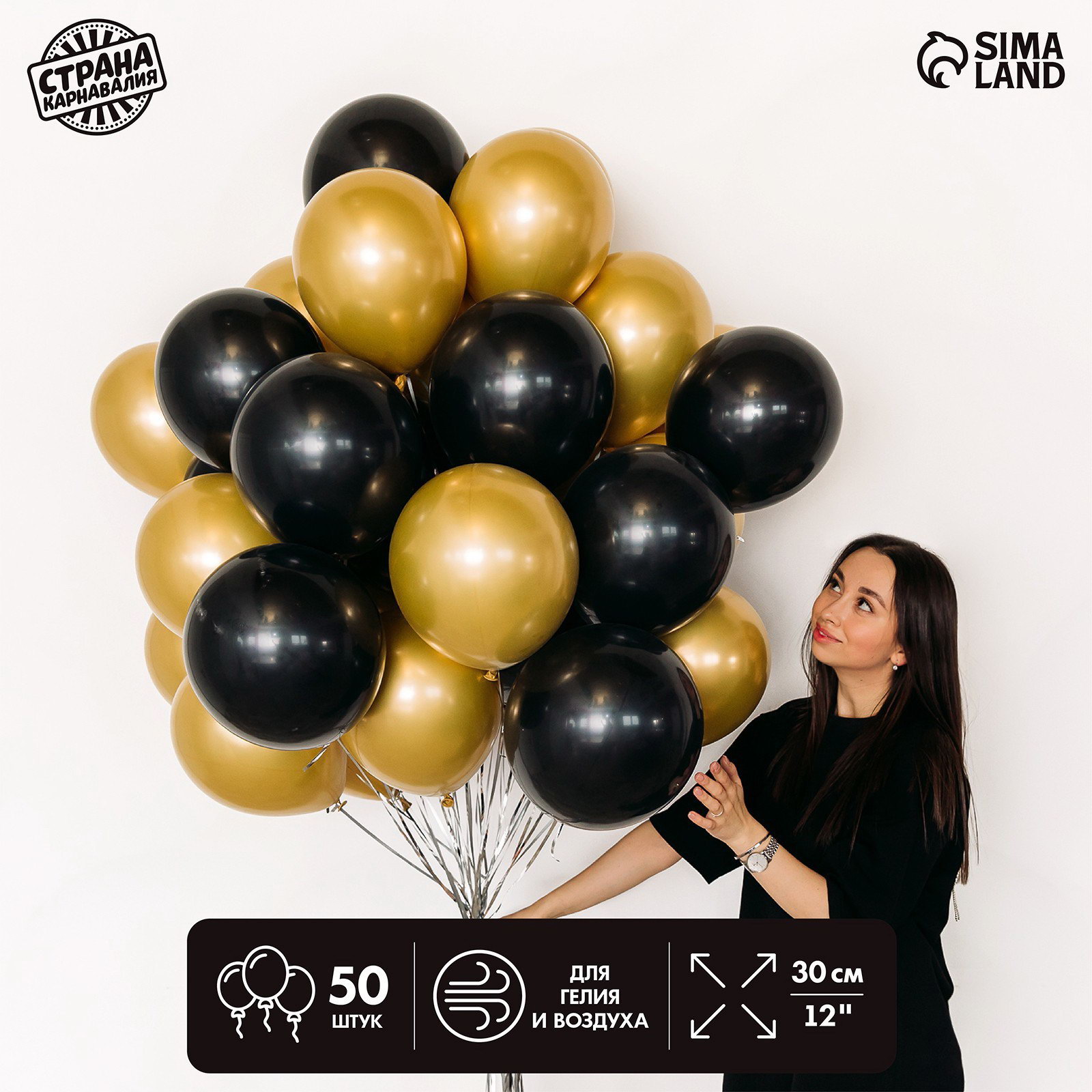 Набор воздушных шаров "Чёрно-золотой", латекс, хром, 50 шт., Страна Карнавалия, Китай