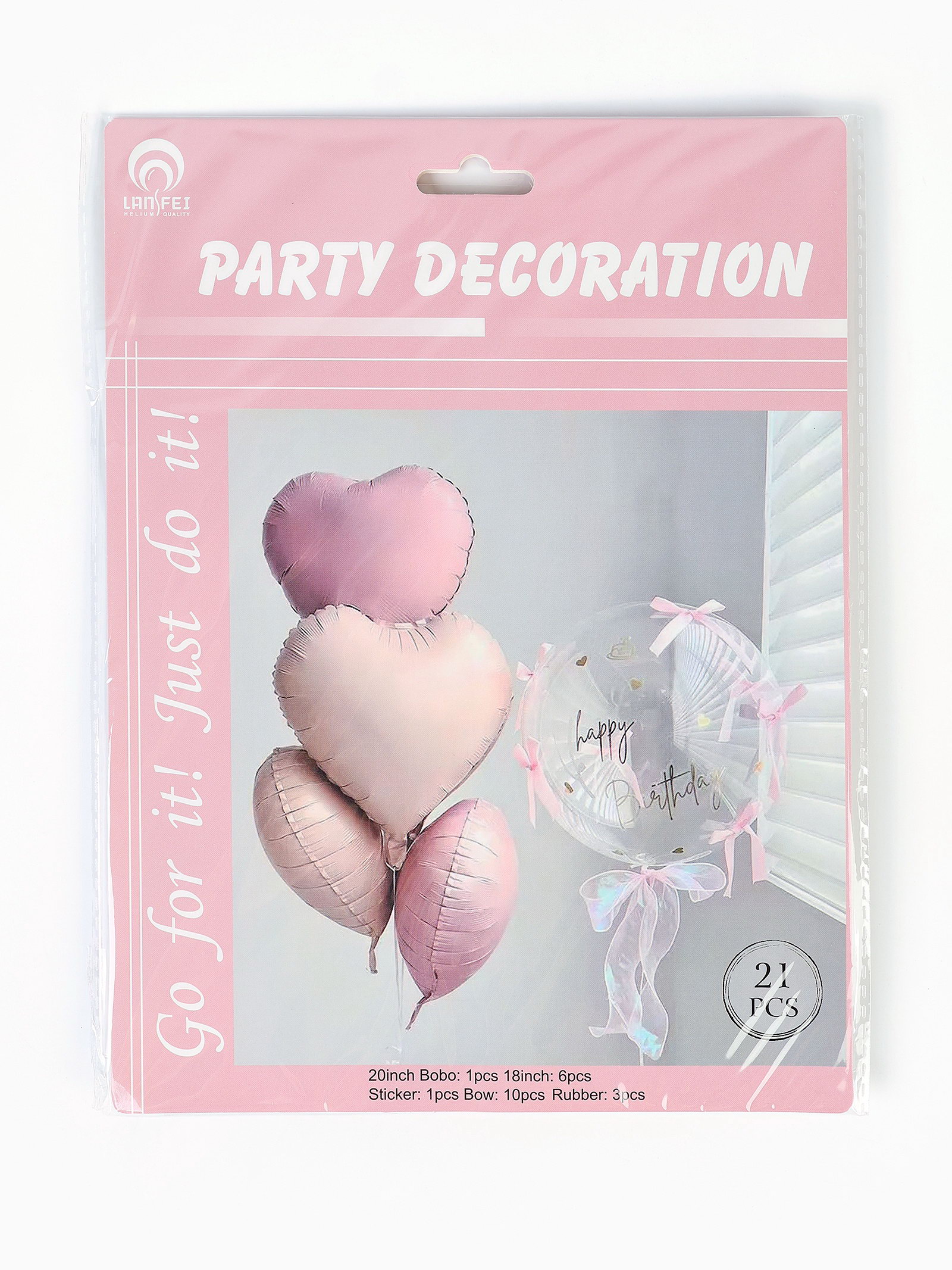 Составляющие набора: Сердце, Сфера Надувка шара: Воздухом, Гелием Размер упаковки: 20 x 1 x 25.5 см. tnved: 9503010000 В наборе, шт.: 21 Тематика рисунка: Без рисунка Цвет: Розовый Адресат: Именинница Вид: Шары Тематика праздника: День рождения Вид шара: Готовые наборы Создайте идеальную праздничную атмосферу с нашим набором воздушных шаров! Этот комплект включает тщательно подобранную комбинацию цветов и размеров, позволяющую легко и быстро украсить любое пространство. Шары изготовлены из качественных материалов, хорошо держат форму и подходят для наполнения как воздухом, так и гелием. Комплектация: