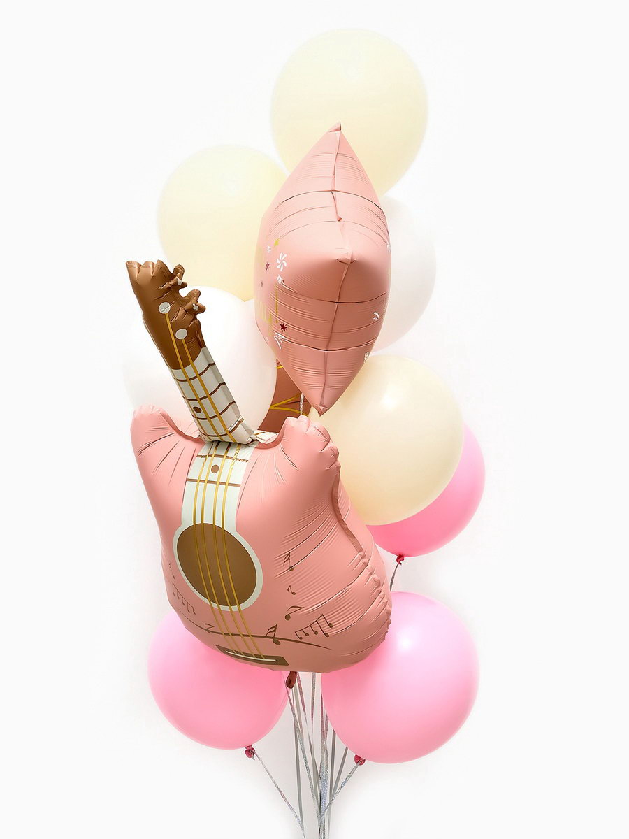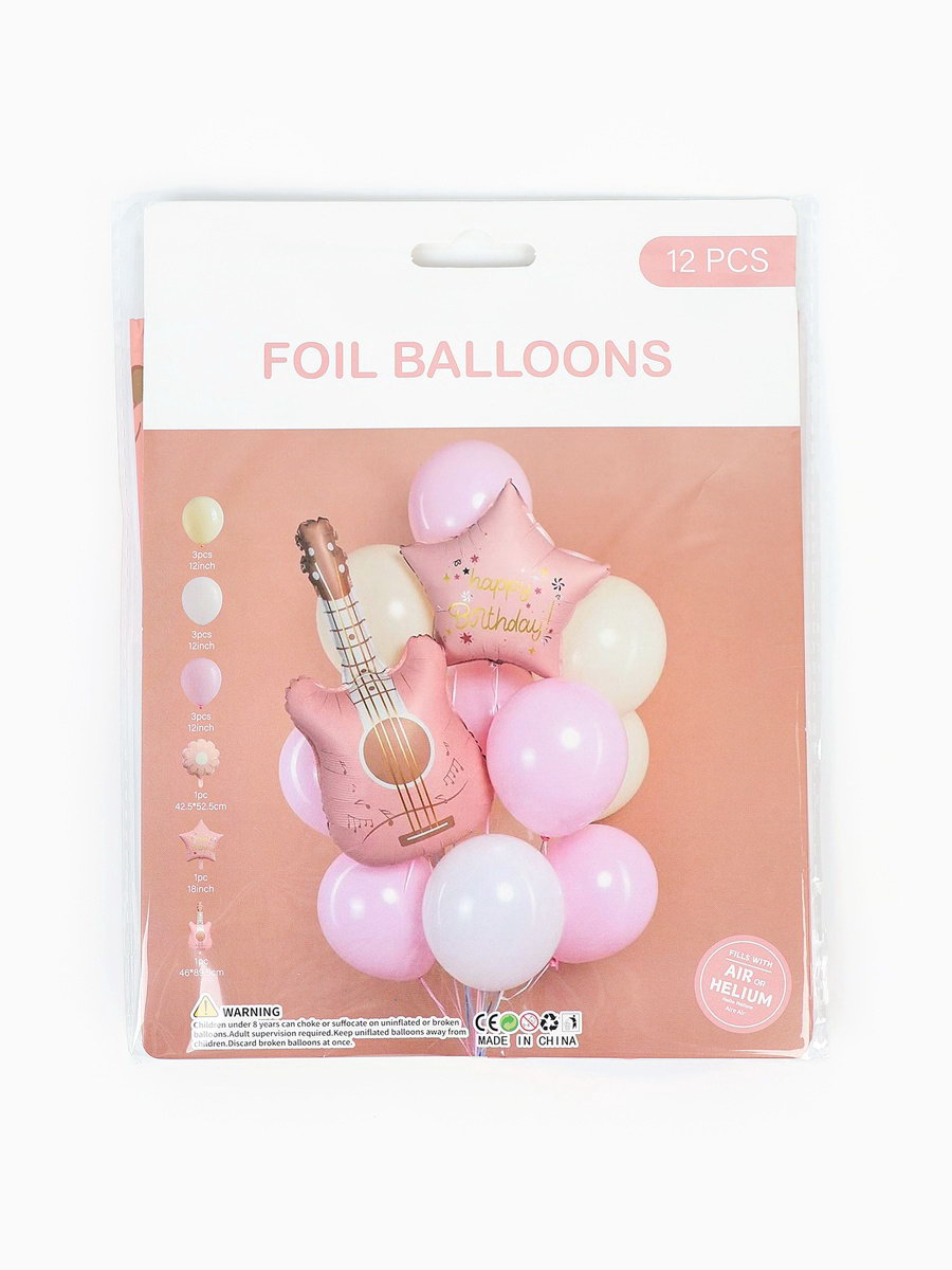 Воздушные шары "Розовая гитара", фольга, латекс, набор 12 шт., 17x22x0.5 см., Страна Карнавалия, Китай