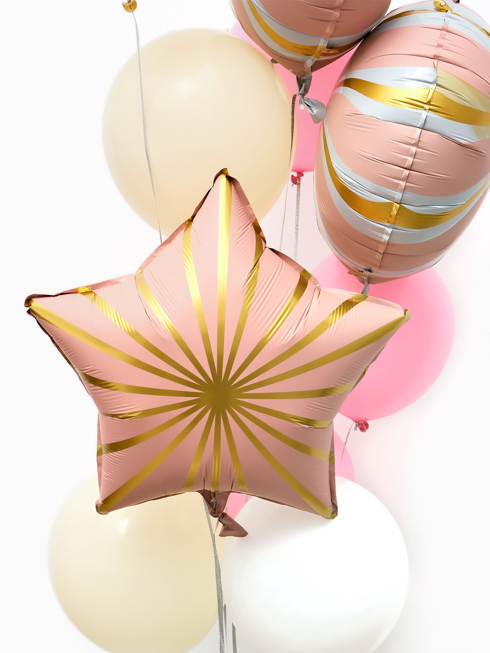 Надувка шара: Воздухом, Гелием Оттенок: Пастель, Сатин Составляющие набора: Звезда, Классический, Фигура Цвет: Бежевый, Розовый Размер упаковки: 17.5 x 0.6 x 21.3 см. tnved: 9503010000 Вид шара: Фигура Тематика рисунка: Разное Адресат: Без адресата Набор: Да В наборе, шт.: 12 Тематика праздника: Универсальная тематика Вид: Шары Букет из шаров "Розовые грани" это эффектное сочетание фольгированных и латексных шаров. Набор из 12 шаров станет стильным украшением для любого праздника, будь то день рождения, тематическая вечеринка или свадьба. Особенности набора