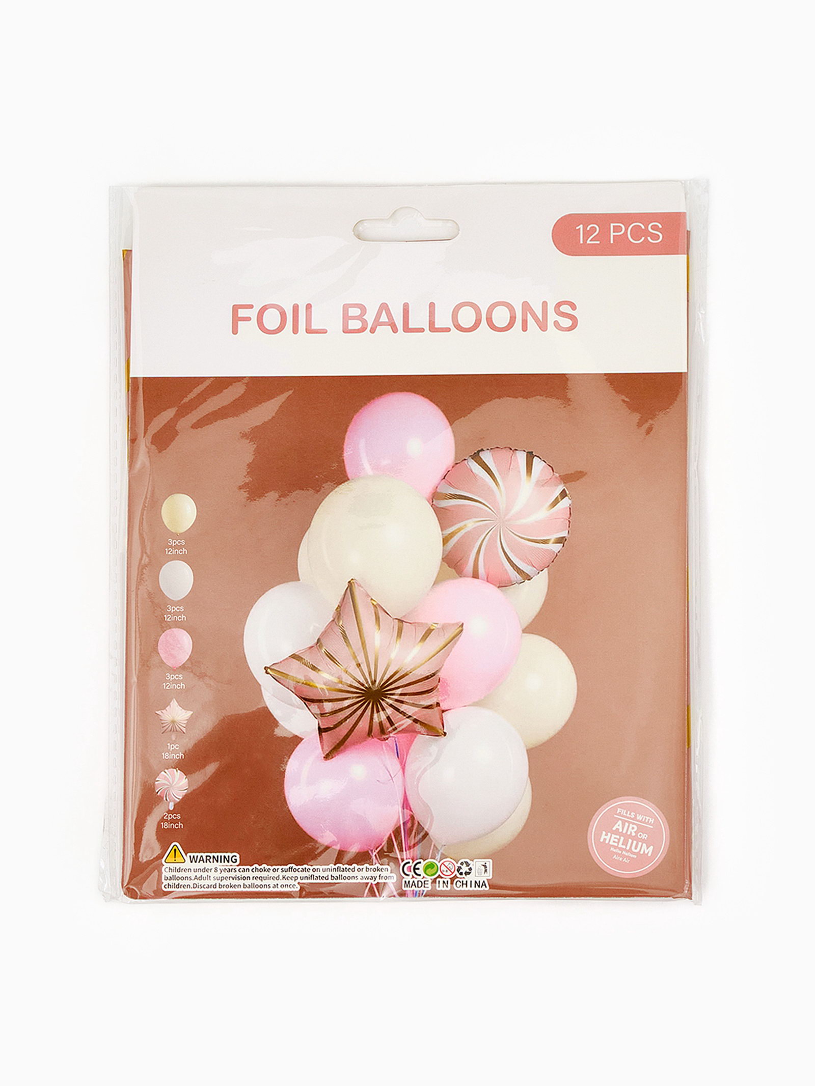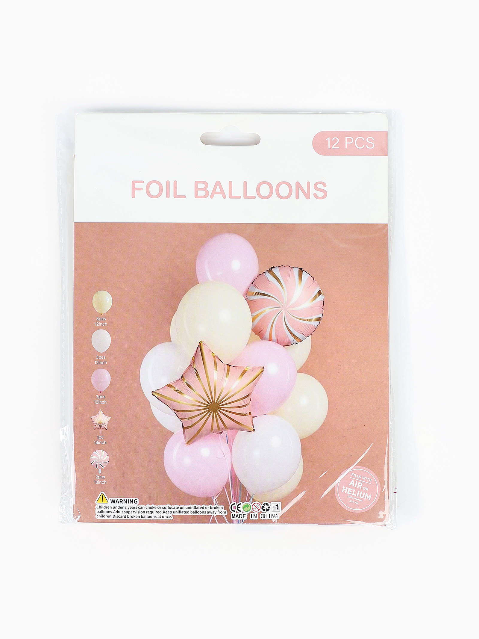 Воздушные шары "Розовые грани", фольга, латекс, набор 12 шт., 17x22x0.5 см., Страна Карнавалия, Китай