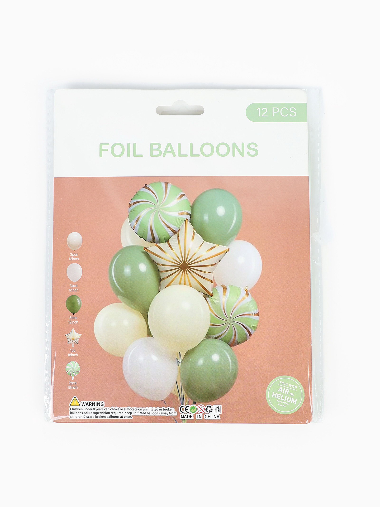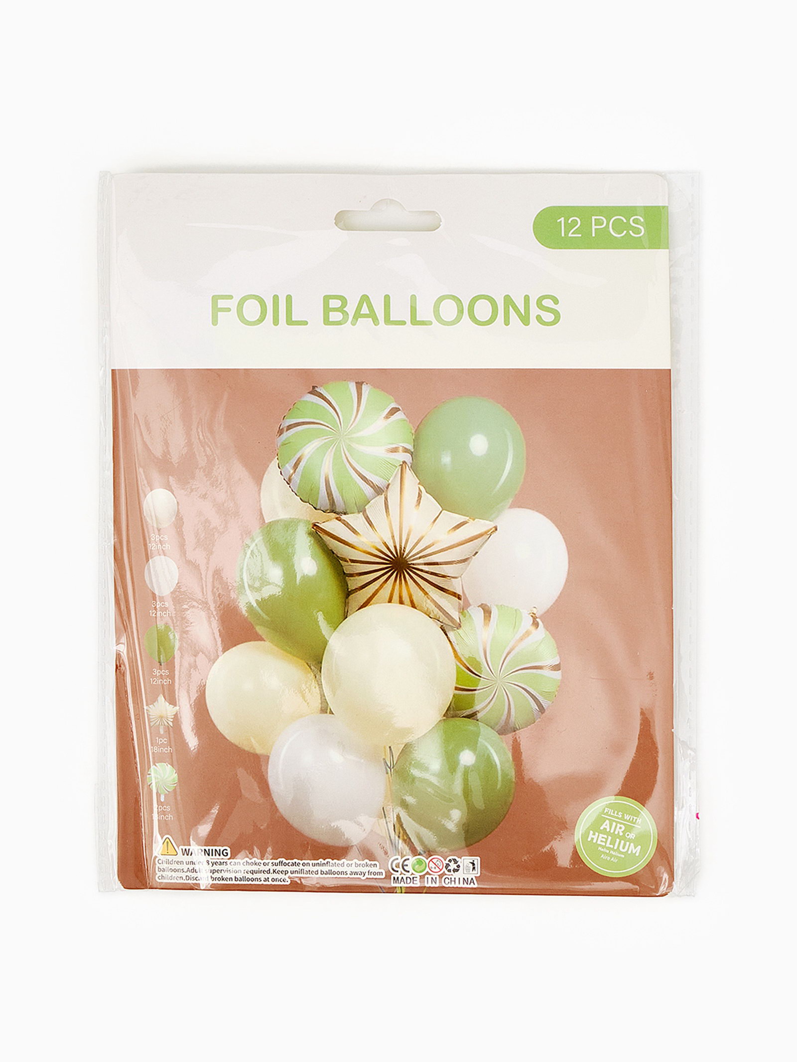 Воздушные шары "Зелёные грани", фольга, латекс, набор 12 шт., 17x22x0.5 см., Страна Карнавалия, Китай