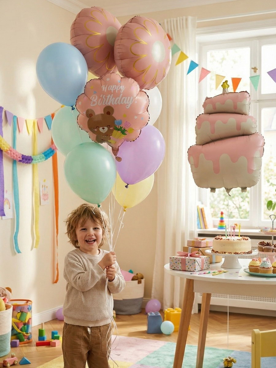Воздушные шары "Розовый тортик", фольга, латекс, набор 12 шт., 17x22x0.5 см., Страна Карнавалия, Китай