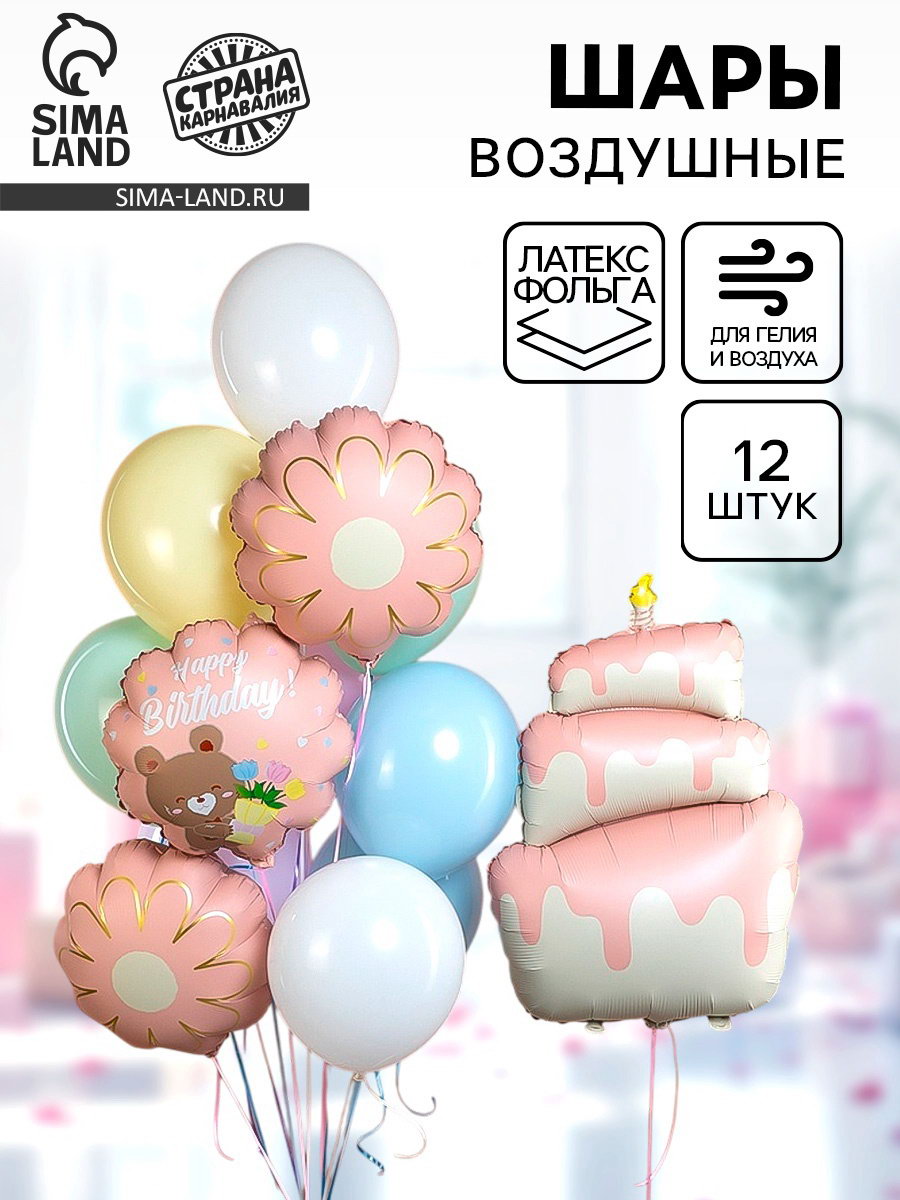 Надувка шара: Воздухом, Гелием Оттенок: Пастель, Сатин Составляющие набора: Звезда, Классический, Фигура Размер упаковки: 17.5 x 0.6 x 21.3 см. tnved: 9503010000 Вид шара: Фигура Тематика рисунка: День Рождения Набор: Да Адресат: Без адресата В наборе, шт.: 12 Цвет: Разноцветный Вид: Шары Тематика праздника: День рождения Букет из шаров "Розовый тортик" это эффектное сочетание фольгированных и латексных шаров. Набор из 12 шаров станет стильным украшением для праздника. Особенности набора