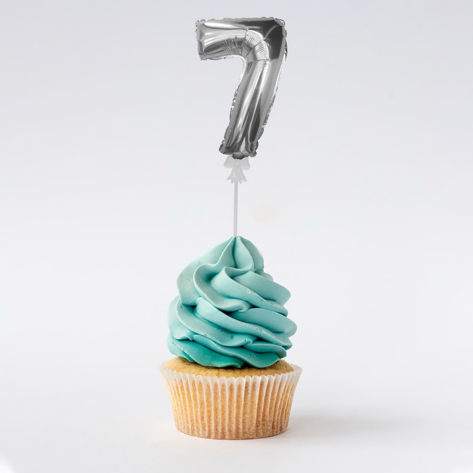 Цифра-топпер 3""7" с палочкой, самодув, индивидуальная упаковка, цвет серебряный, 13x19 см., Страна Карнавалия, Китай