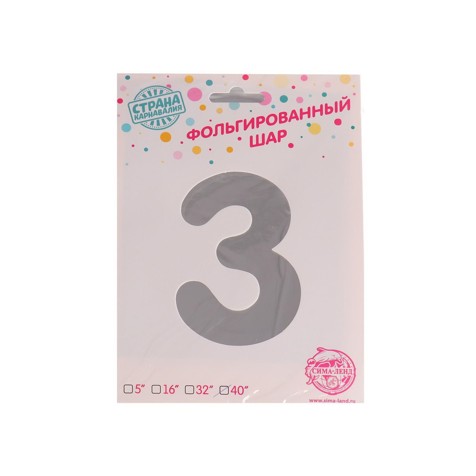 Воздушный шар фольгированный 40""Цифра 3", 50x100x0.3 см., Страна Карнавалия, Китай