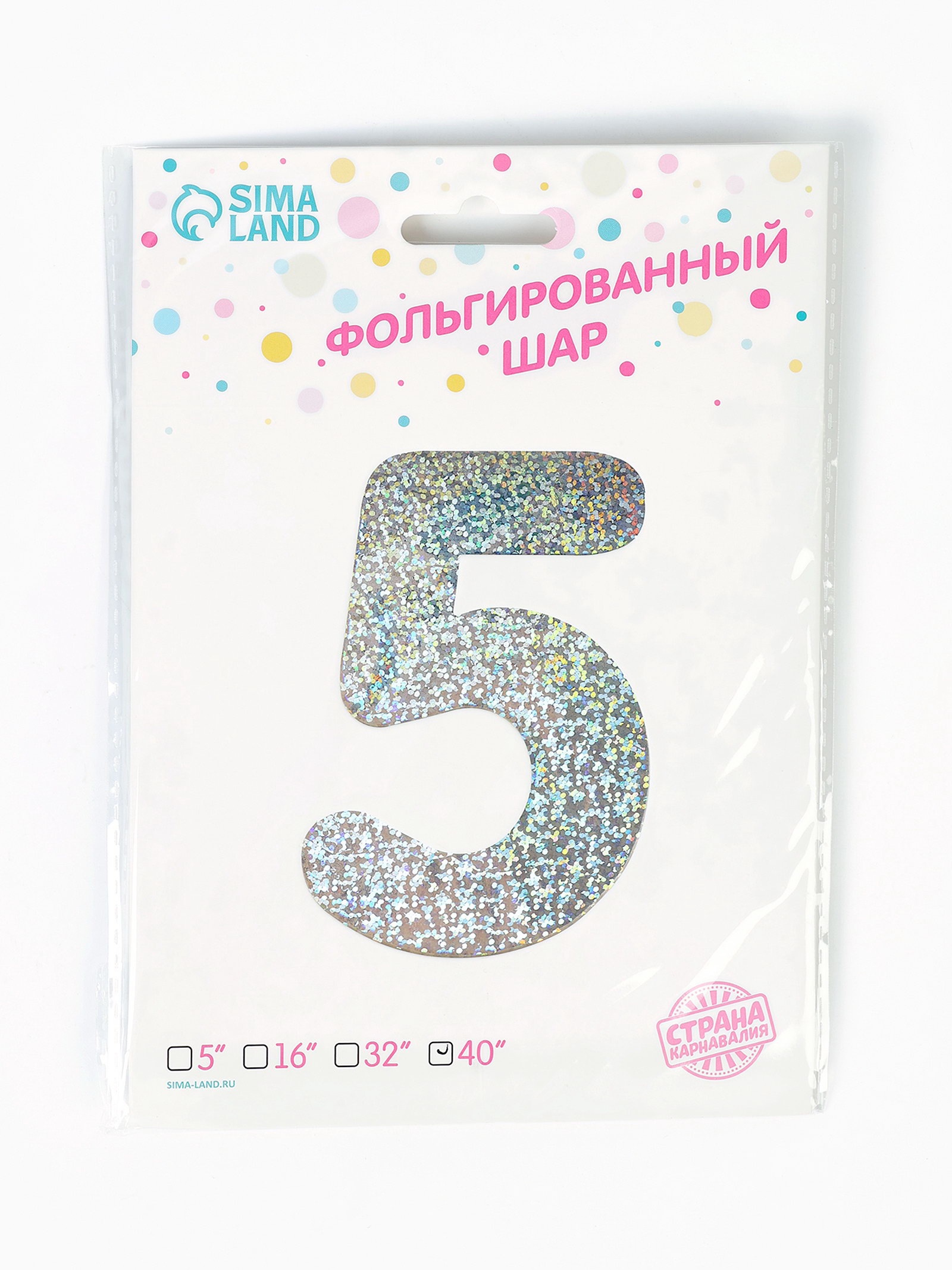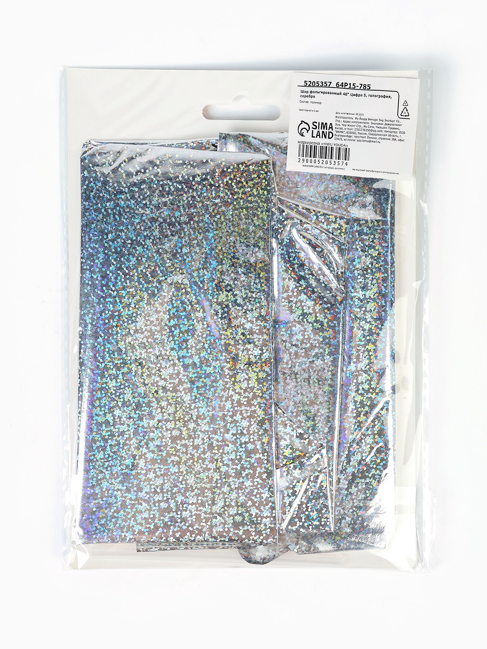 Воздушный шар фольгированный 40""Цифра 5", голография, 15x20x0.2 см., Страна Карнавалия, Китай
