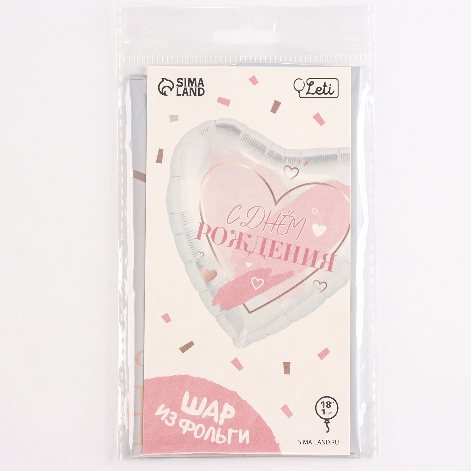 Воздушный шар фольгированный 18""С днём рождения", сердце, 9x13x0.5 см., LETI, Китай