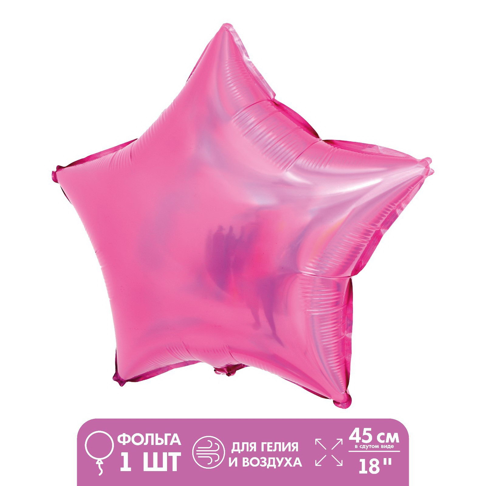 Шар фольгированный 18""Звезда голография", цвет фуксии, 15x15x0.3 см., Страна Карнавалия, Китай