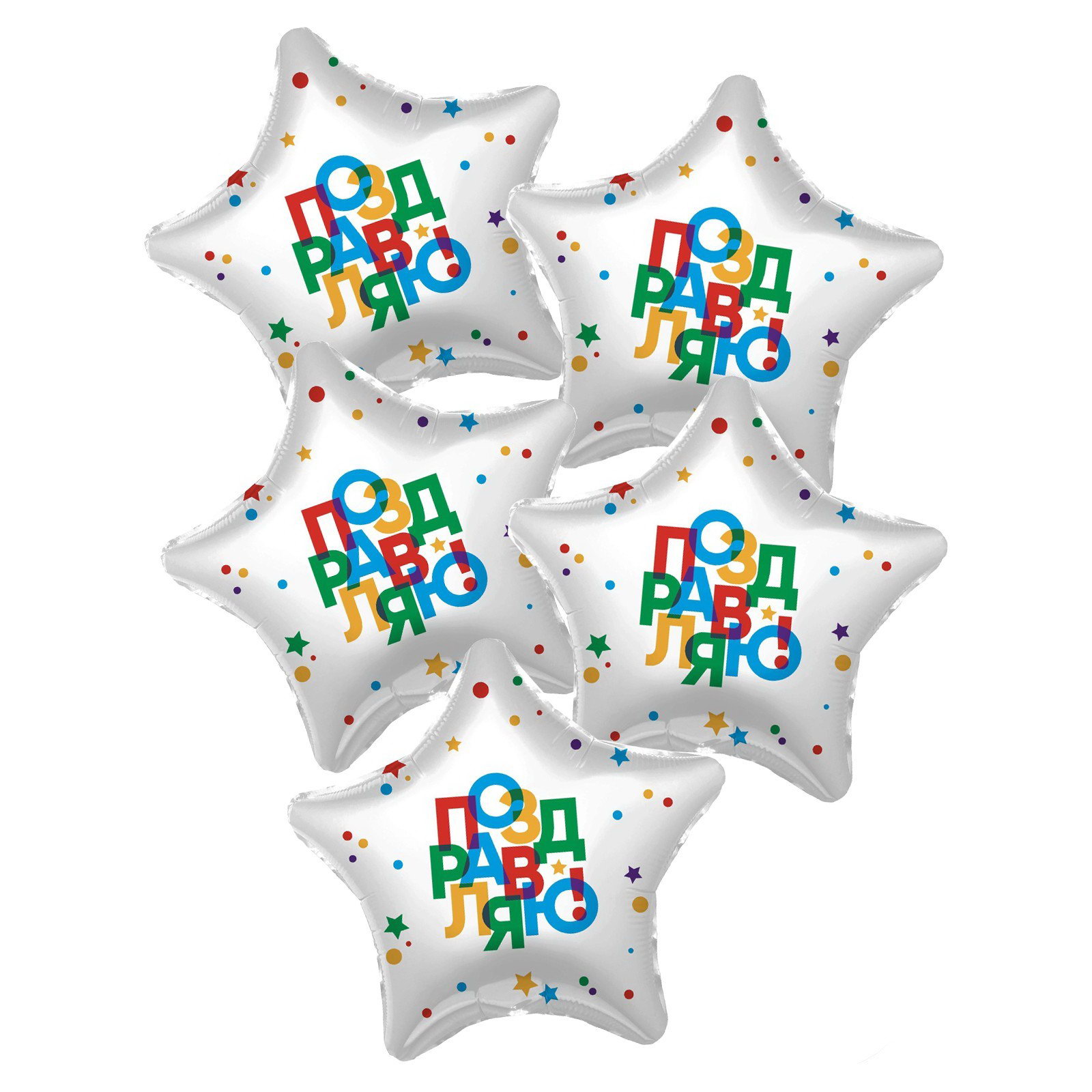 Шар фольгированный 19""Поздравляю", звезда, набор 5 шт., Россия