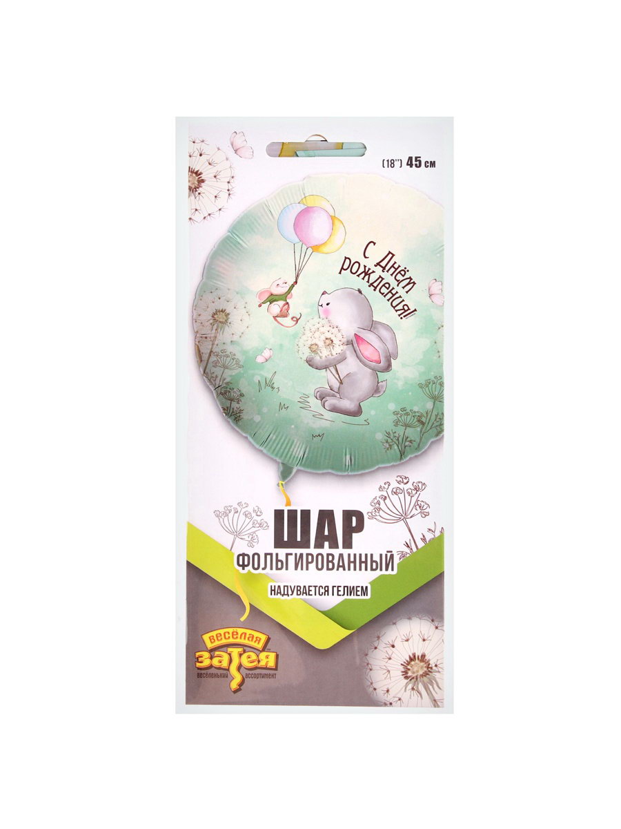 Шары воздушные фольгированные 18""Зайка с одуванчиками", Весёлая Затея, Китай