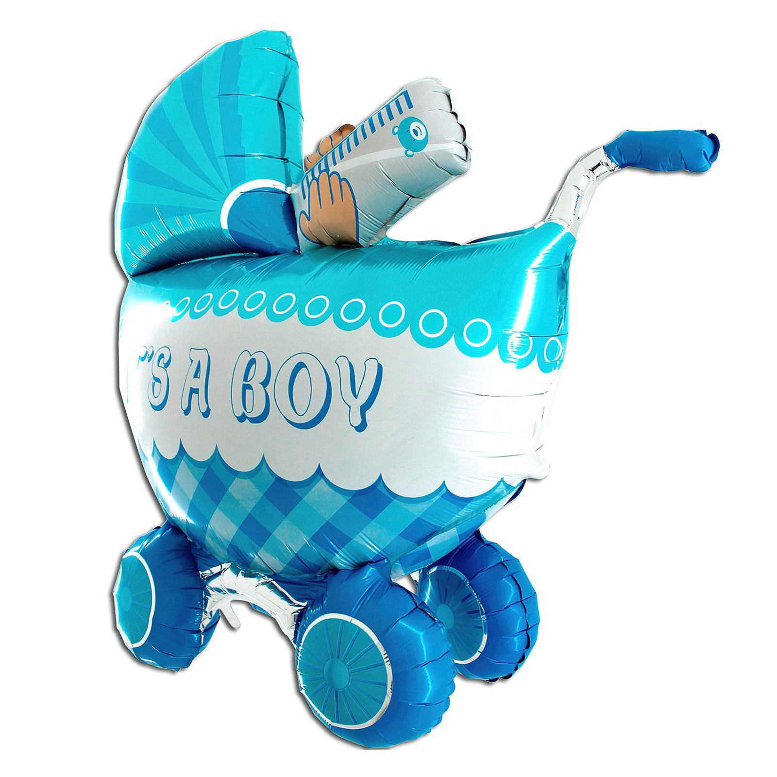 Шар фольгированный 27'' Фигура, "3D Коляска для мальчика", на подставке, GRABO, Италия