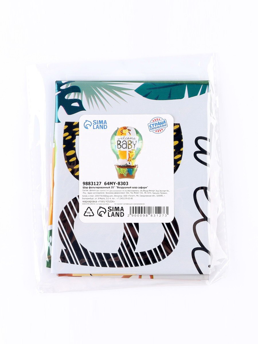 Воздушный шар фольгированный 35""Сафари", фигура, 58x90x0.2 см., Страна Карнавалия, Китай