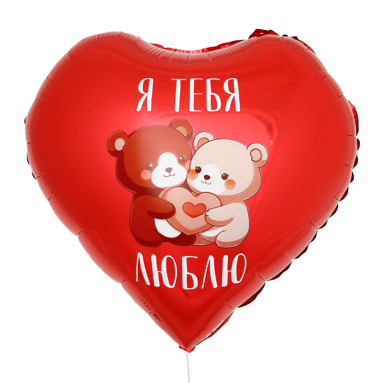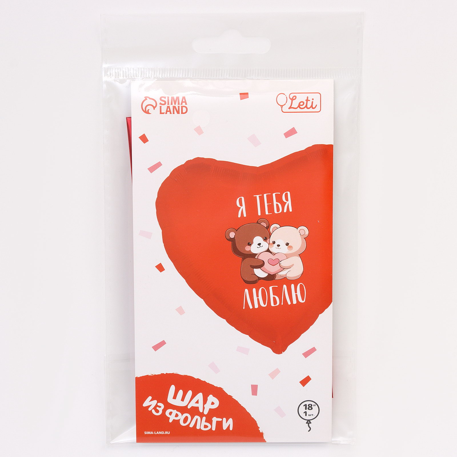 Воздушный шар фольгированный 18""Я тебя люблю. Мишки", сердце, с подложкой, LETI, Китай