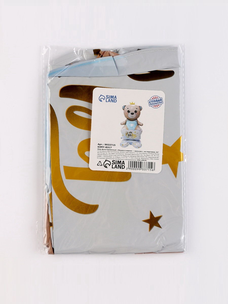 Воздушный шар фольгированный 62""Мишка в короне мальчик", на подставке, 77x154x0.2 см., Страна Карнавалия, Китай
