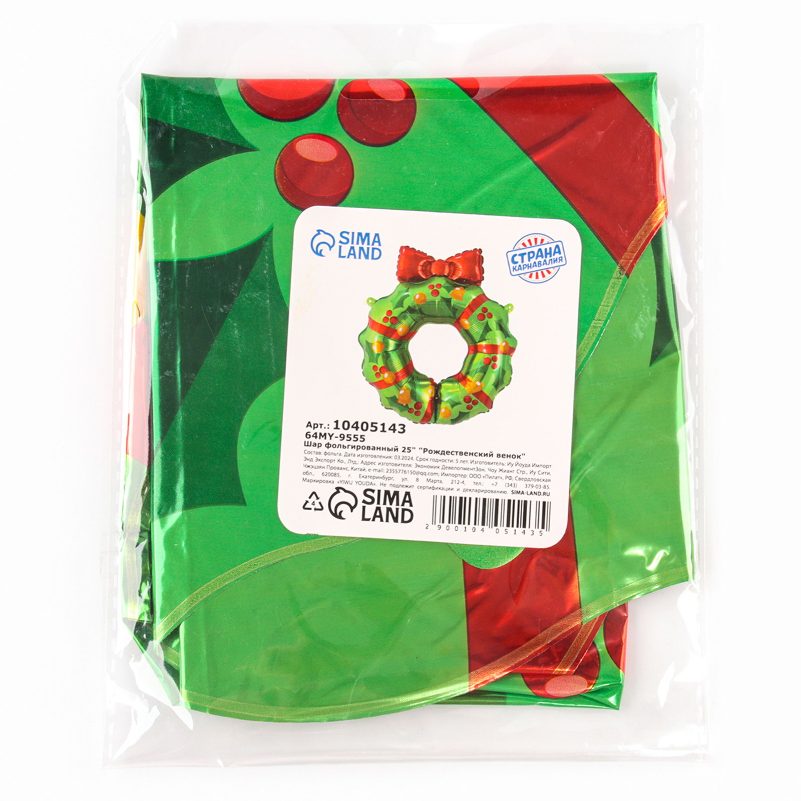 Воздушный шар фольгированный 25""Рождественский венок", 63x63x0.2 см., Страна Карнавалия, Китай