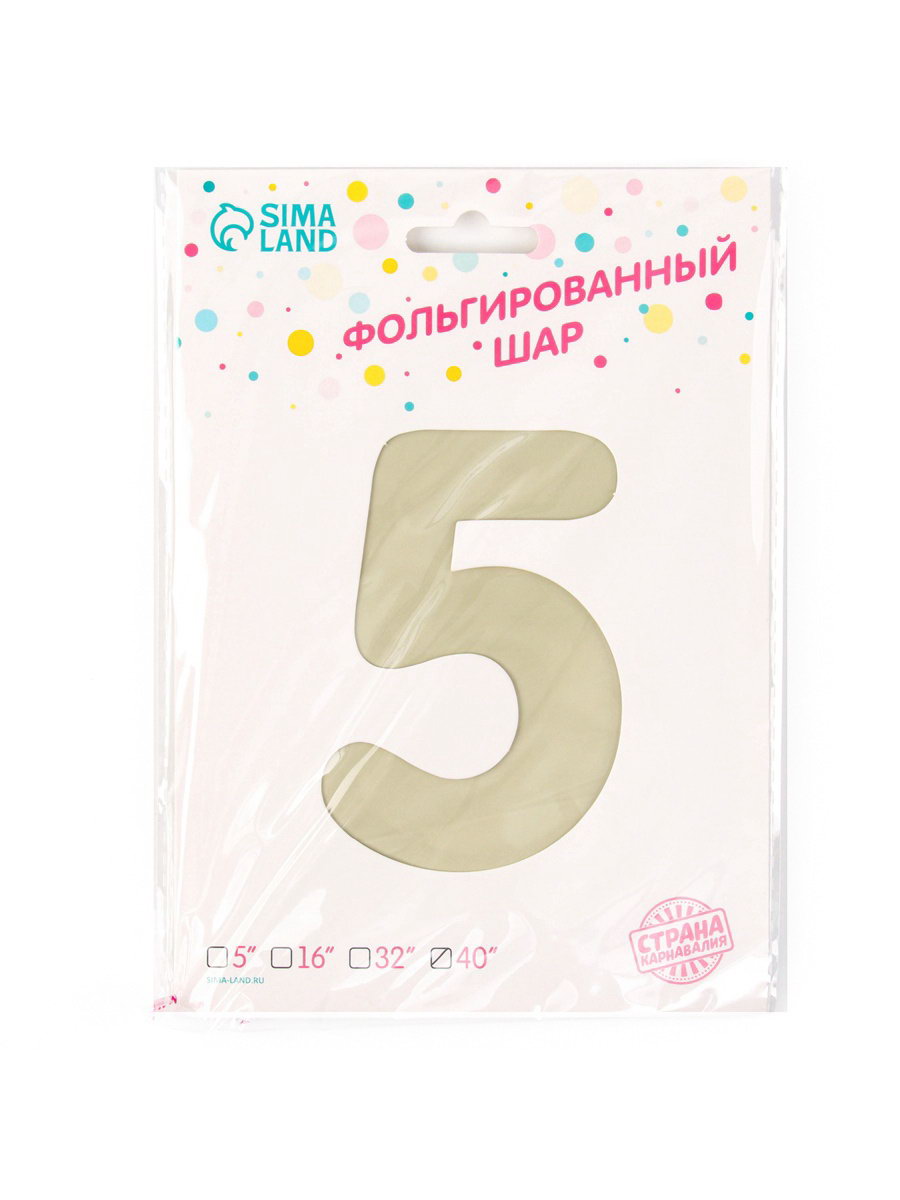 Шар фольгированный 42""Цифра 5 с короной" на подставке, цвет взбитые сливки, 50x105x0.2 см., Страна Карнавалия, Китай