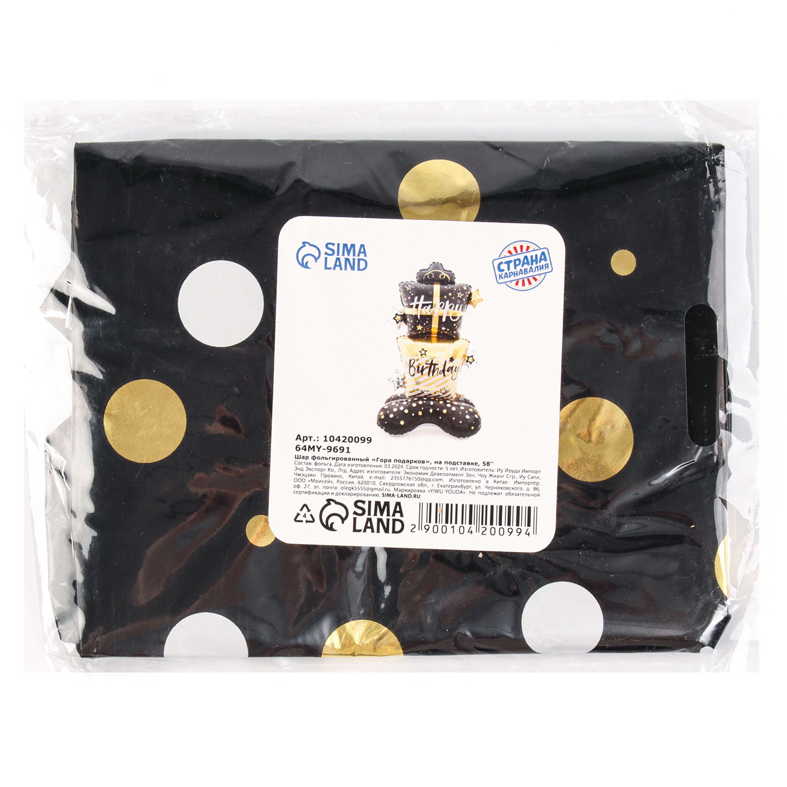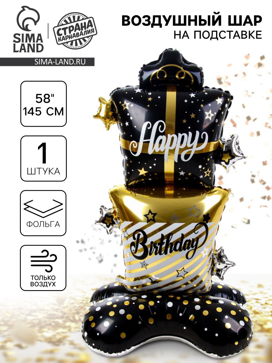 Цвет: Золотистый, Чёрный Размер упаковки: 13 x 0.5 x 16 см. Тематика рисунка: День Рождения Вид шара: Фигура Надувка шара: Воздухом Диаметр, дюйм: 58 Набор: Нет Наличие клапана: Да Рисунок: Да tnved: 9503010000 Оттенок: Глянец Адресат: Имениннику/Имениннице Индивидуальная упаковка: Да | ||