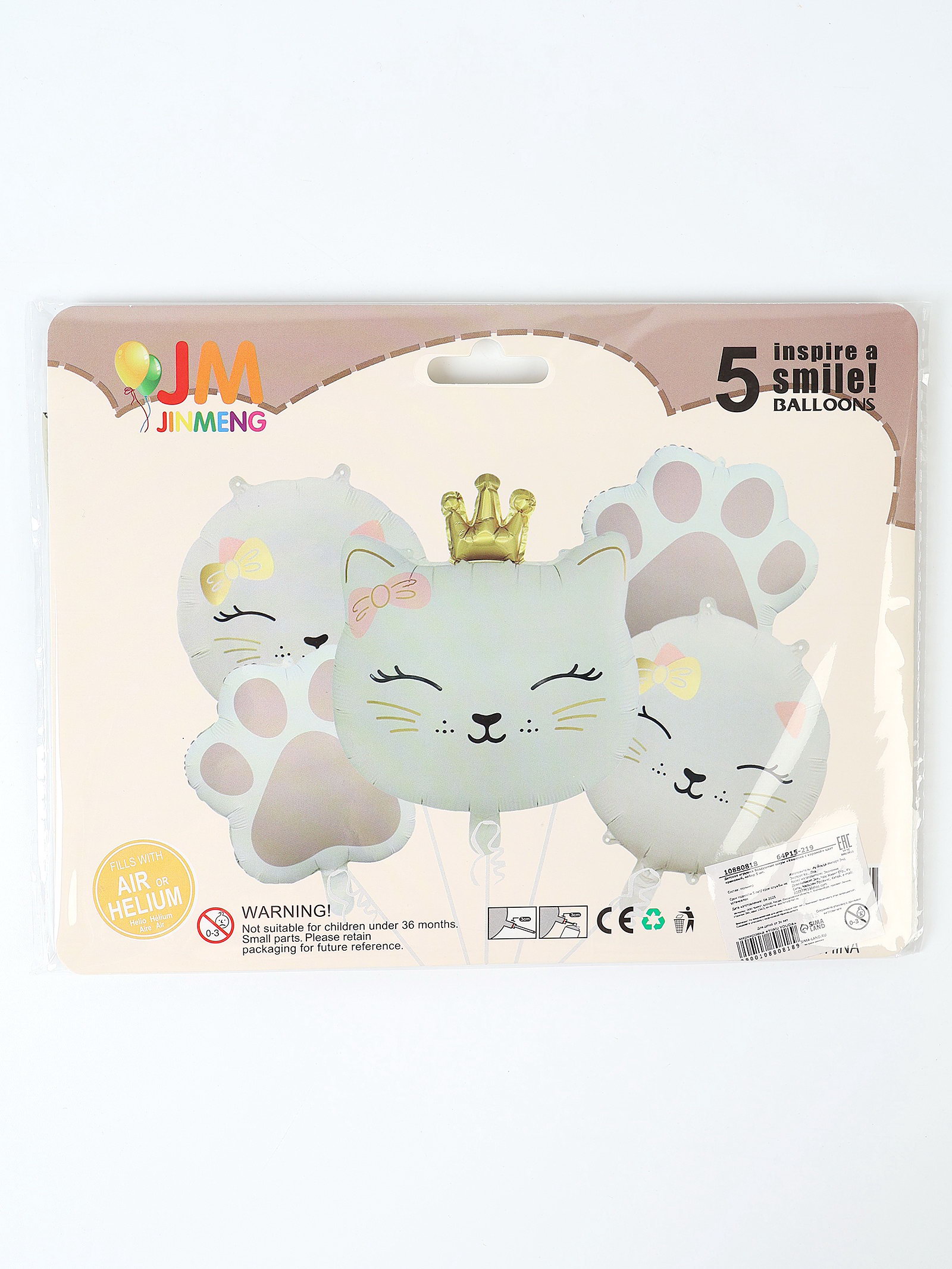Диаметр, дюйм: 18, 21, 24 Вид: Воздушные шары, Шары Надувка шара: Воздухом, Гелием Размер упаковки: 16.5 x 0.3 x 21.5 см. tnved: 9503010000 Набор: Да Наличие клапана: Да В наборе, шт.: 5 Рисунок: Да Цвет: Белый Вид шара: Готовые наборы Тематика праздника: Универсальная тематика Тематика рисунка: Животные Язык надписи: Без надписи Персонажи: Кошка, кот Оттенок: Матовый Адресат: Без адресата Набор фольгированных шаров (5 шт.)Подарите ребенку настоящий праздник с этим красочным набором из пяти фольгированных шаров! Яркие, притягивающие взгляд дизайны с любимыми детскими персонажами или забавными зверушками создадут неповторимую волшебную атмосферу. Универсальность ключевое преимущество: вы можете надуть шары легким гелием, чтобы они весело парили под потолком, или обычным воздухом для оформления гирлянд, арок и фотозон. Прочная фольга отлично держит форму и не сдувается длительное время. Набор станет идеальным решением для детского дня рождения, утренника в саду или просто чтобы сделать обычный день ярче. Подарите своему малышу море радости и улыбок! | ||