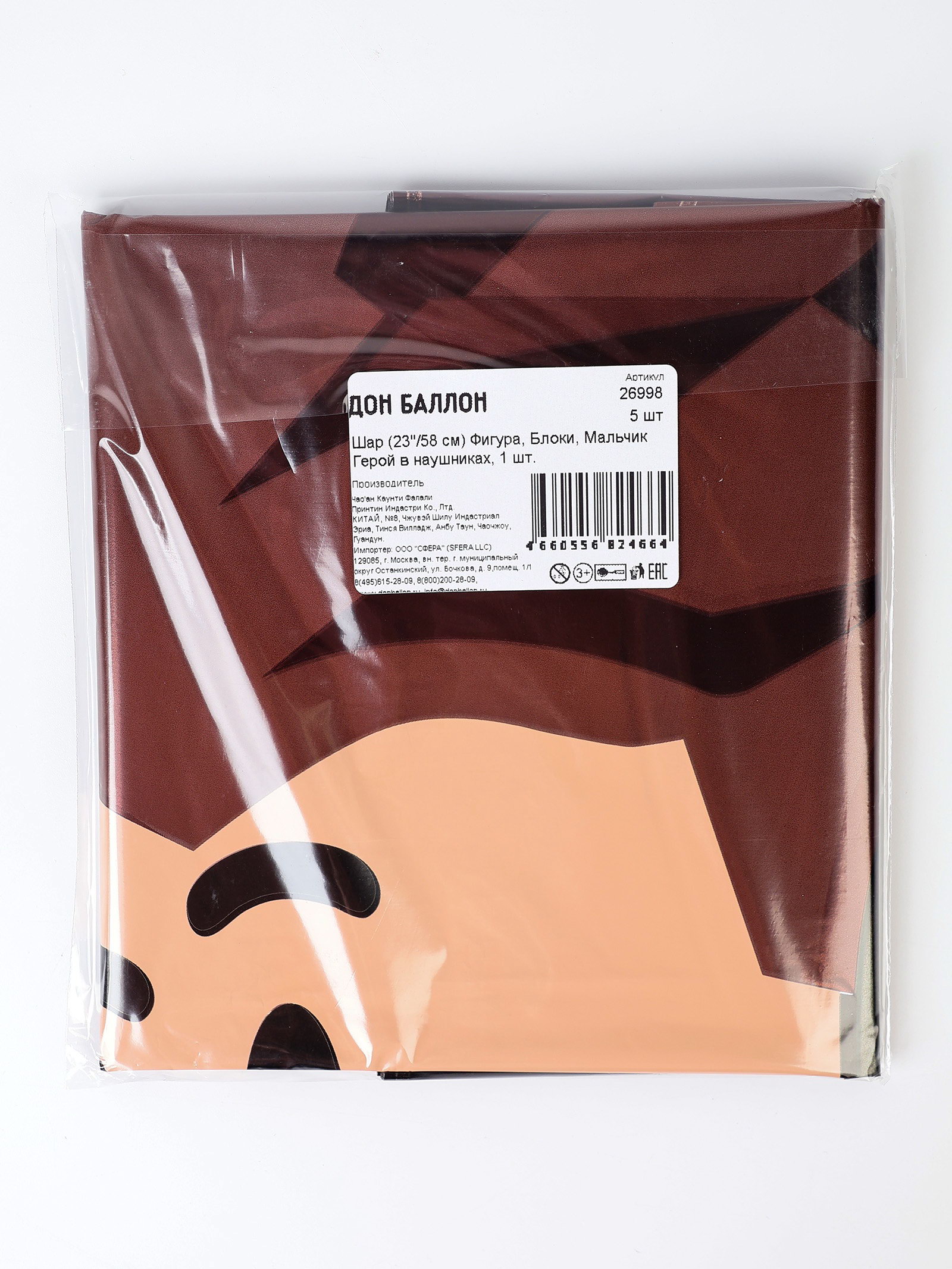 Воздушный шар фольгированный 23""Блоки, Мальчик в наушниках", FALALI, Китай