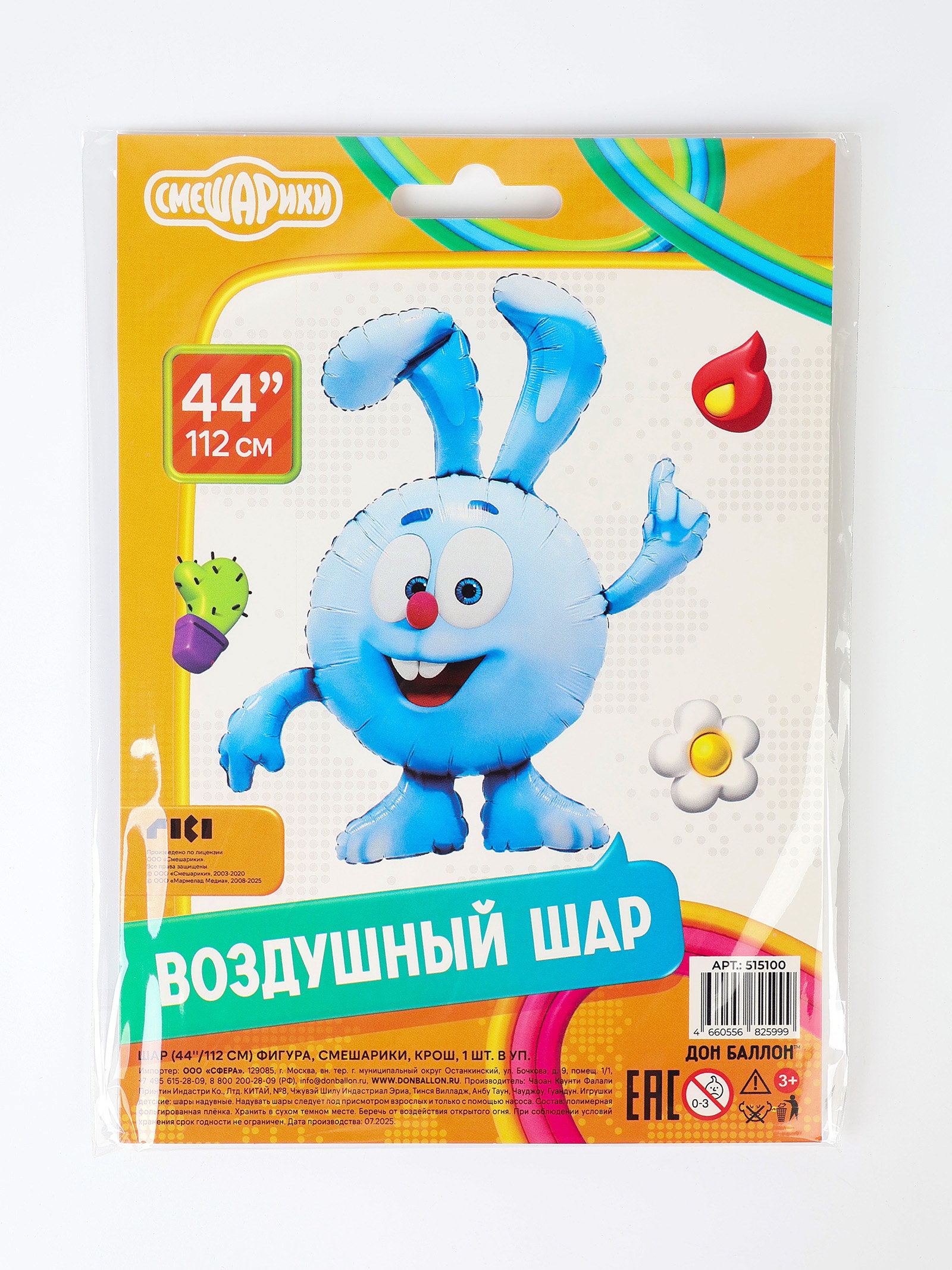 Надувка шара: Воздухом, Гелием Размер упаковки: 13 x 0.3 x 19 см. tnved: 9503010000 Температурное ограничение: Нет Диаметр, дюйм: 44 Вид шара: Фигура Цвет: Голубой Тематика рисунка: Детская Наличие клапана: Да Рисунок: Да Набор: Нет Индивидуальная упаковка: Да Оттенок: Глянец Персонажи: Смешарики Тематика праздника: Универсальная тематика Вид: Воздушные шары Адресат: Без адресата Для кого: Унисекс | ||