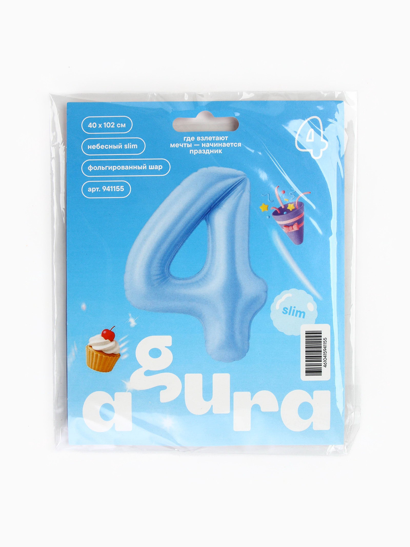 Воздушный шар фольгированный 40""Цифра 4", AGURA, Россия