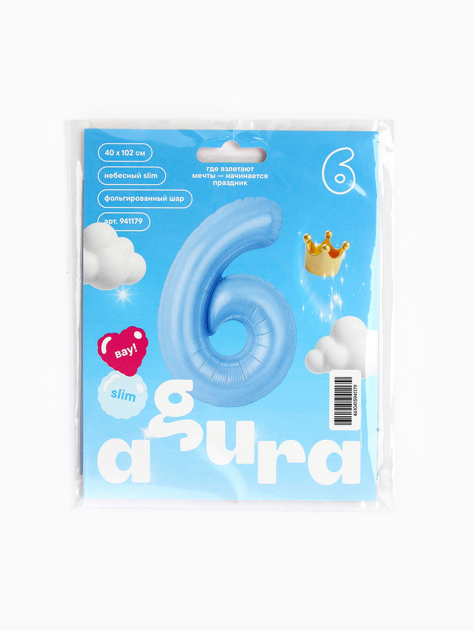 Воздушный шар фольгированный 40""Цифра 6", AGURA, Россия