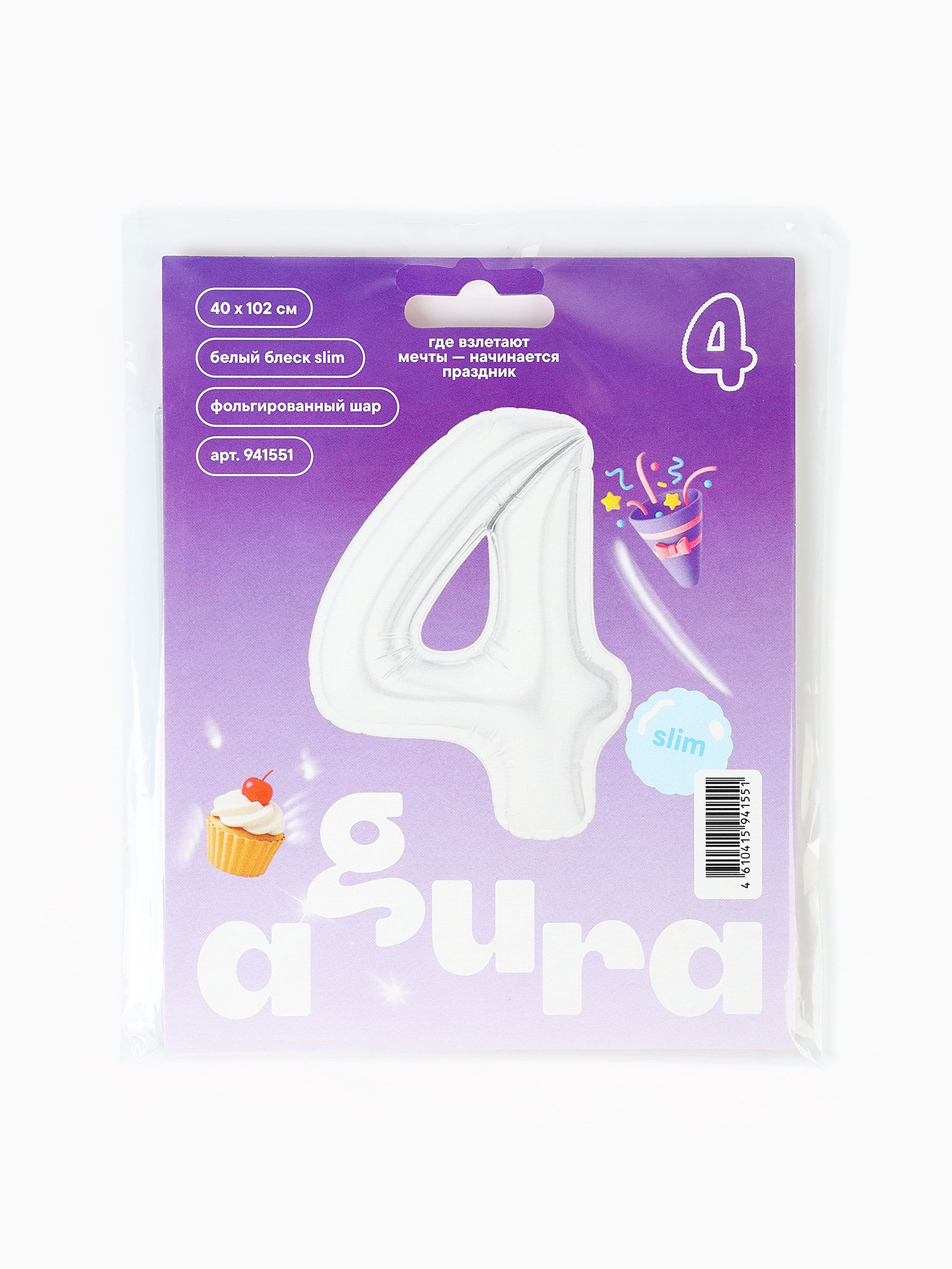 Воздушный шар фольгированный 40""Цифра 4", AGURA, Россия
