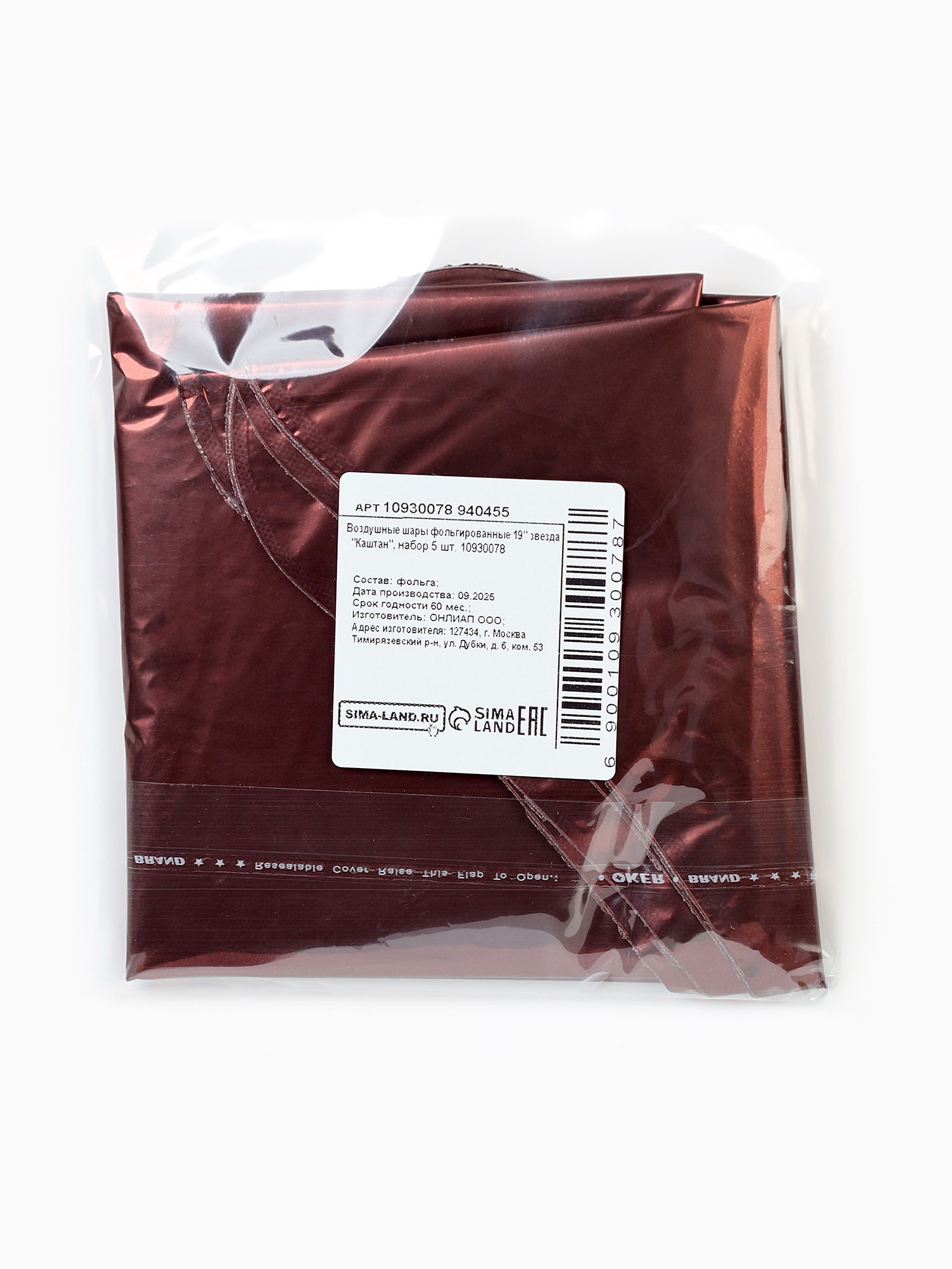 Воздушные шары фольгированные 19""Каштан", 5 шт., AGURA, Россия