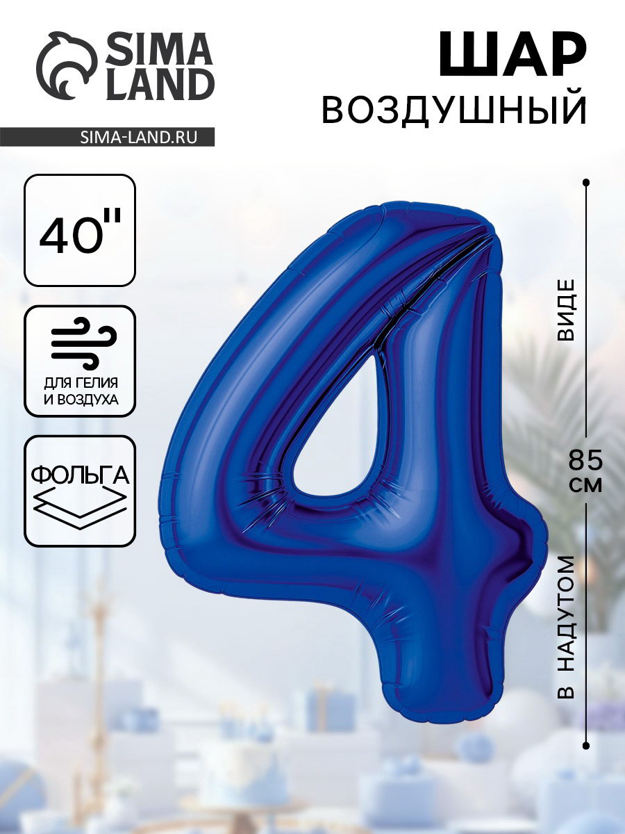 Воздушный шар фольгированный 40""Цифра 4", AGURA, Россия