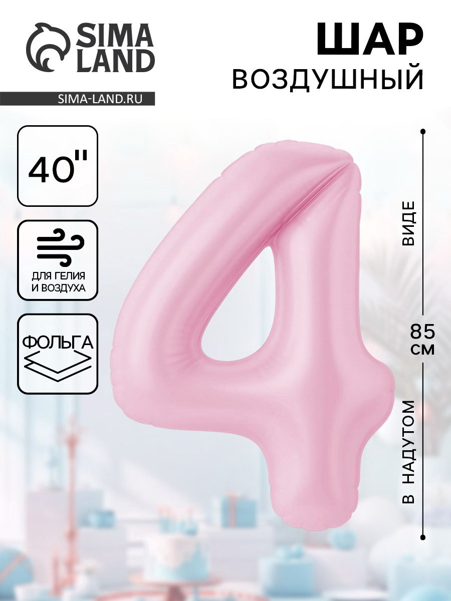 Воздушынй шар фольгированный 40""Цифра 4", AGURA, Россия