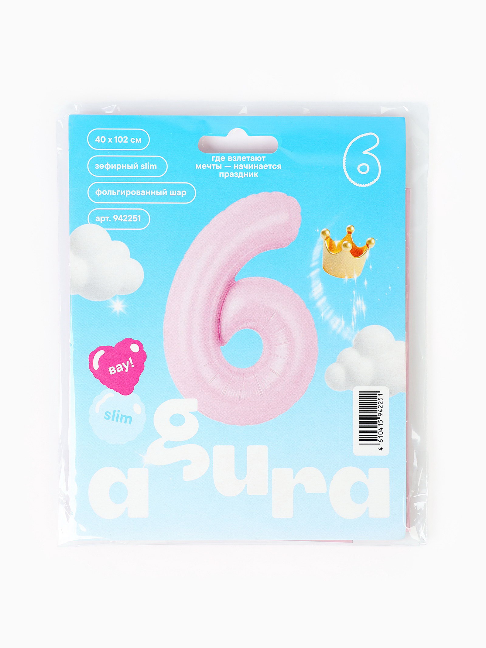 Воздушный шар фольгированный 40""Цифра 6", AGURA, Россия